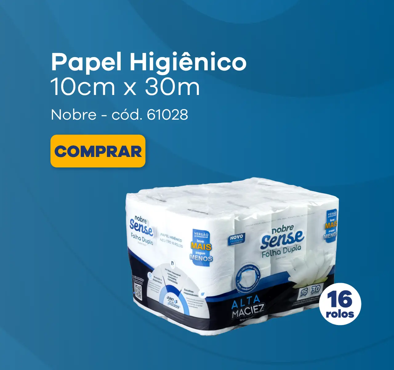Papel higiênico 10cm x30m.(promocional fardo c/16un celulose virgem/f.dupla) Nobre Sense