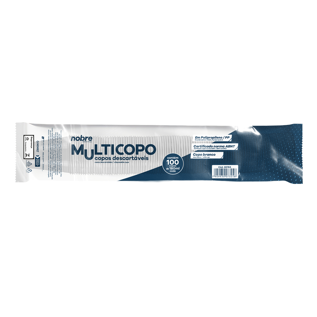Copo descartável 180ml. (tira.c/100unid). PP branco Multicopo – Nobre