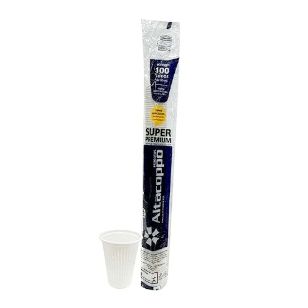 Copo plástico p/café 80ml PP (tira c/ 100unid) branco – Altacoppo