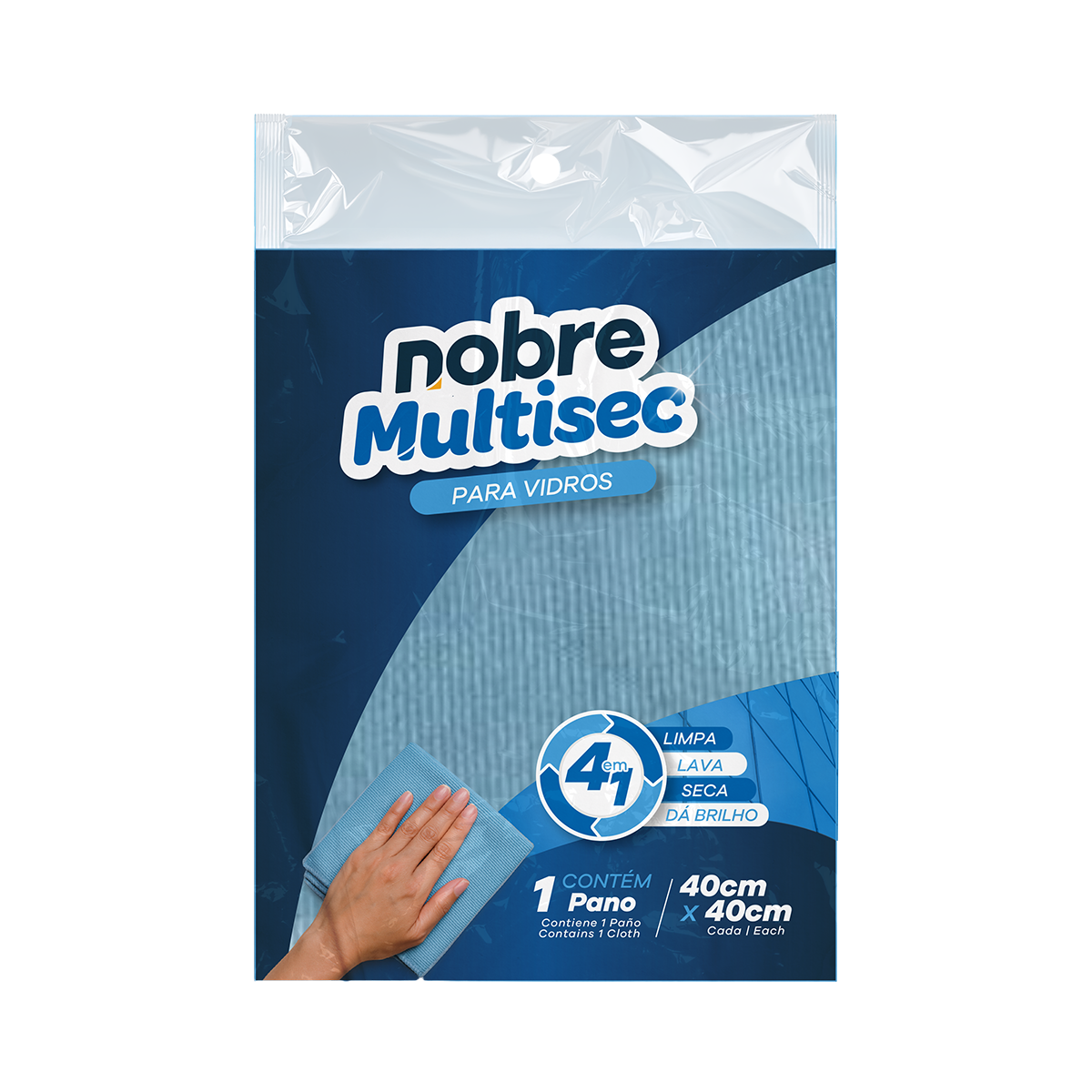 Pano de microfibra para vidros 40x40cm (pacote c/1unid.) azul – Nobre