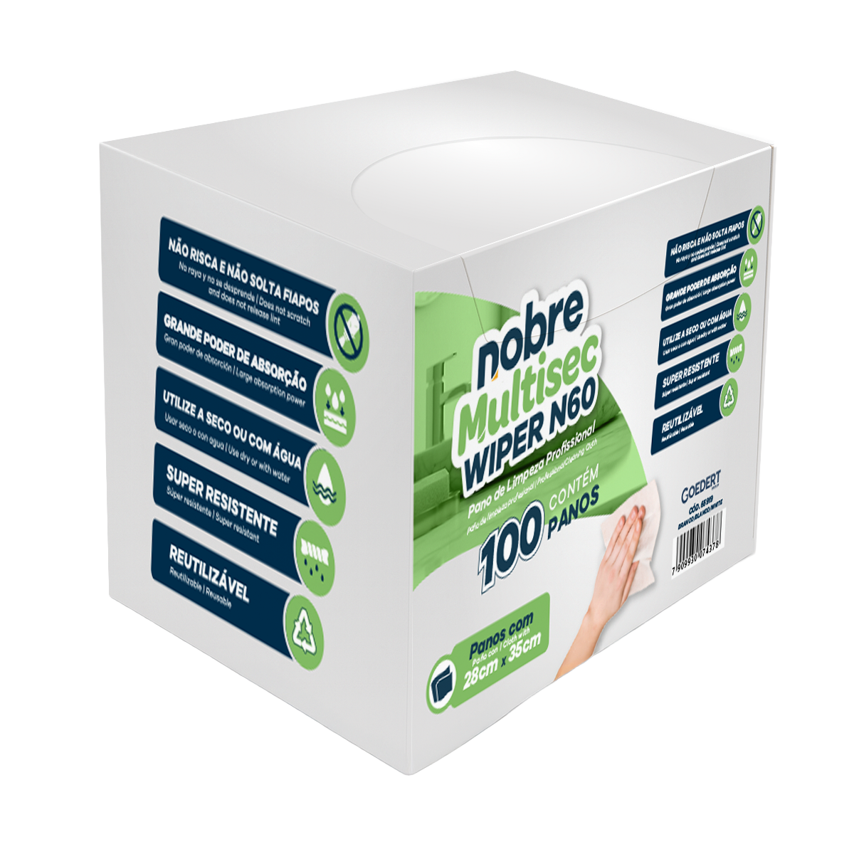 Pano wiper N60 limpeza profissional (caixa c/ 100 toalhas 28x35cm ) branco – Nobre