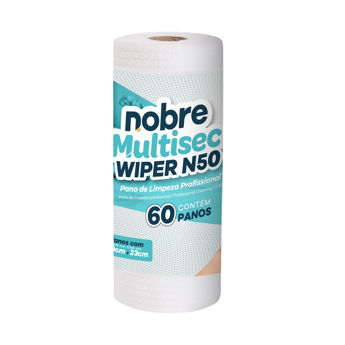 Pano wiper N50 limpeza profissional (rolo com 60 panos de 20cm x 23cm) branco – NOBRE