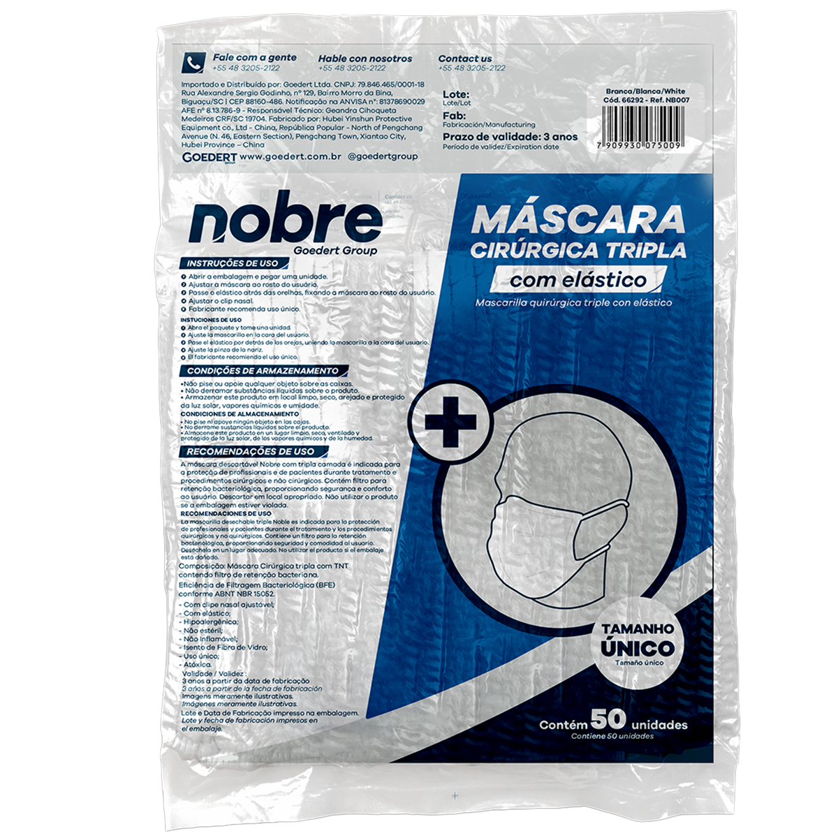 Máscara Cirúrgica Tripla com Elástico (C/ 50 UND) NB007 – NOBRE