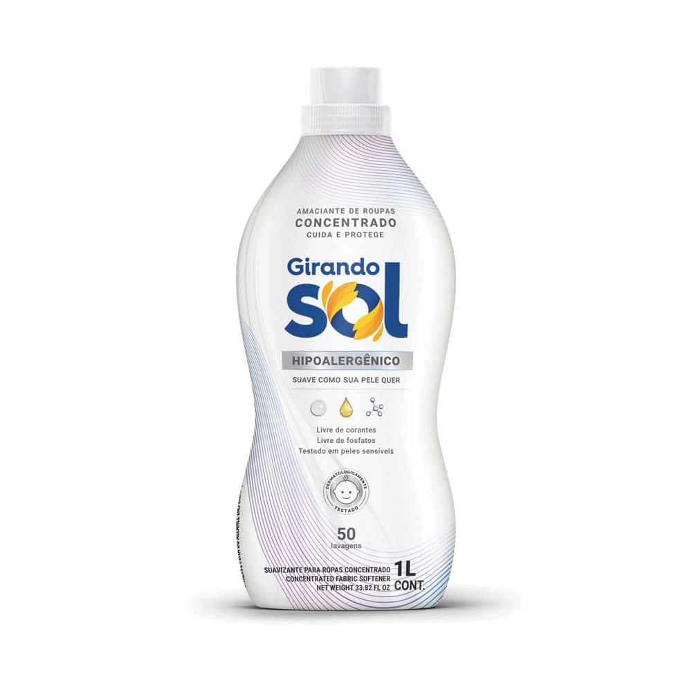 O Amaciante de Roupas Concentrado Girando Sol possui fórmula balanceada e dermatologicamente testada, proporcionando roupas macias, fáceis de passar (efeito antiestático) e gostosas de usar, aliado a perfumes encapsulados que mantém as roupas agradavelmente perfumadas por muito mais tempo.