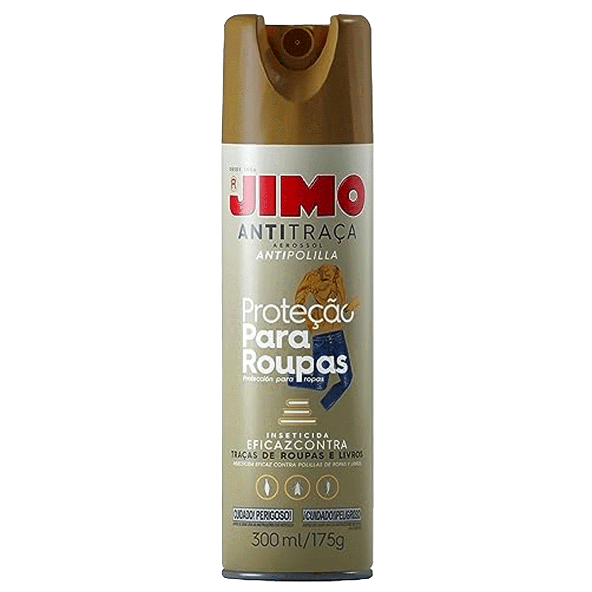 JIMO ANTITRAÇA AEROSSOL é um inseticida eficaz no controle de traças. Deveser aplicado no interior de guarda-roupas(ou closets), em prateleiras e gavetas. O produto também pode ser aplicado diretamente sobre as roupas
