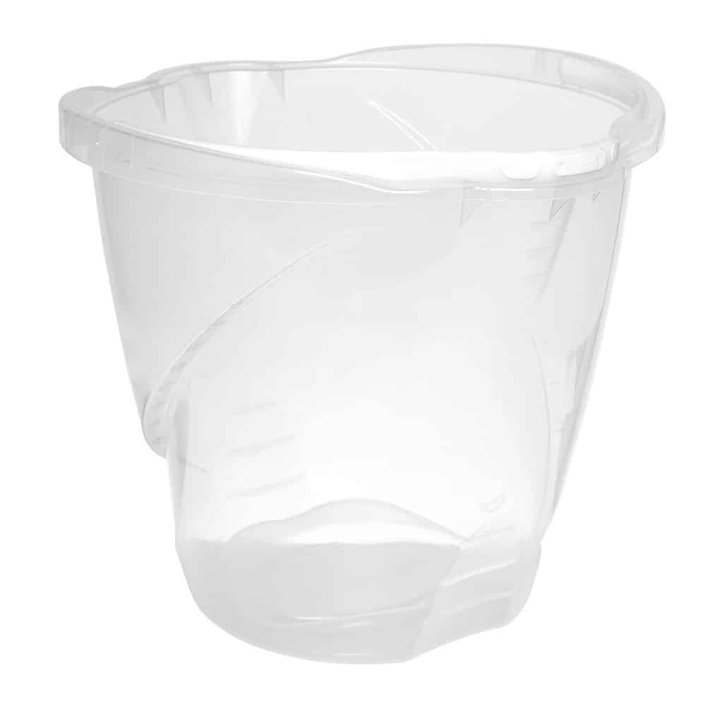 Alta resistência e durabilidade. Alça com pegador anatômico. Duplo bico de escoamento de líquidos. Régua de litragem interna. Pegador inferior que facilita o manuseio.