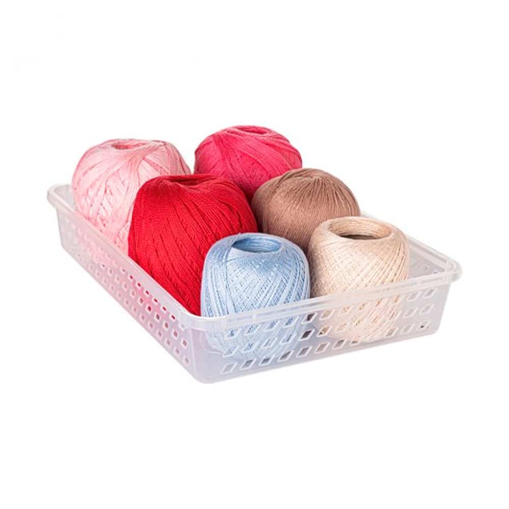 Cestinha de plástico retangular organizadora empilhável. Ideal para organização da geladeira, lavanderia e cozinha. Produzido em plástico polipropileno.