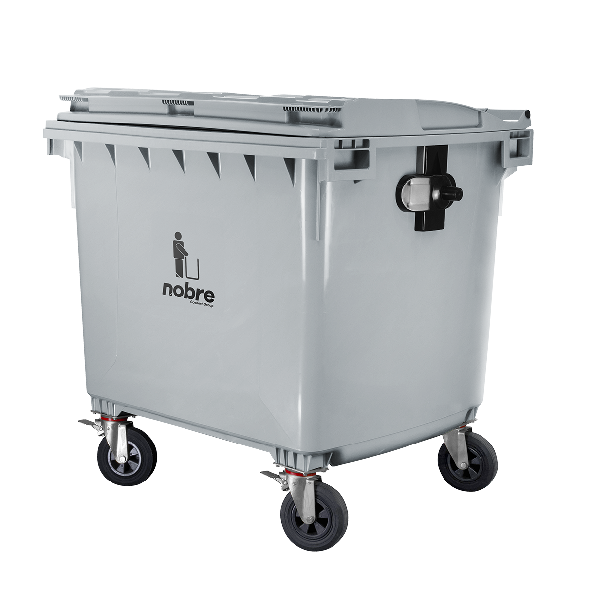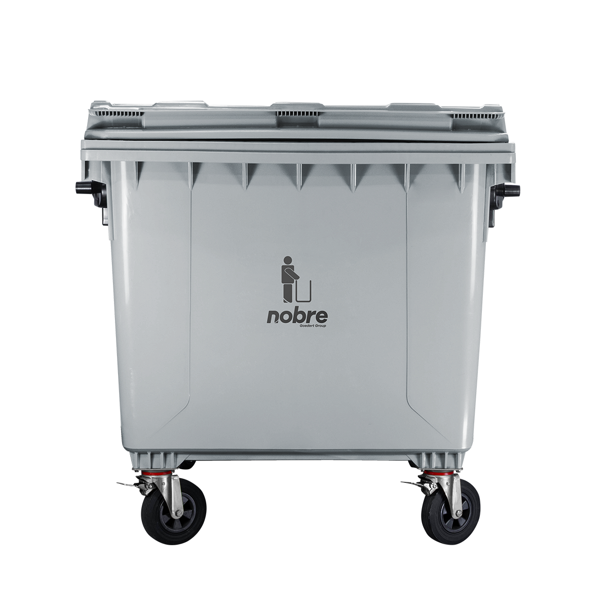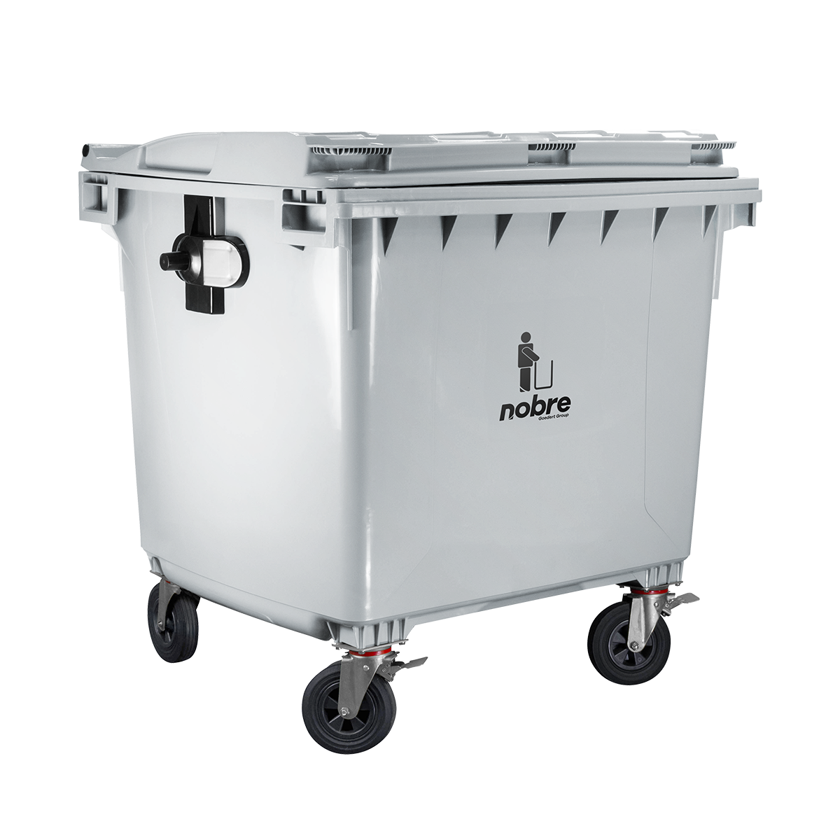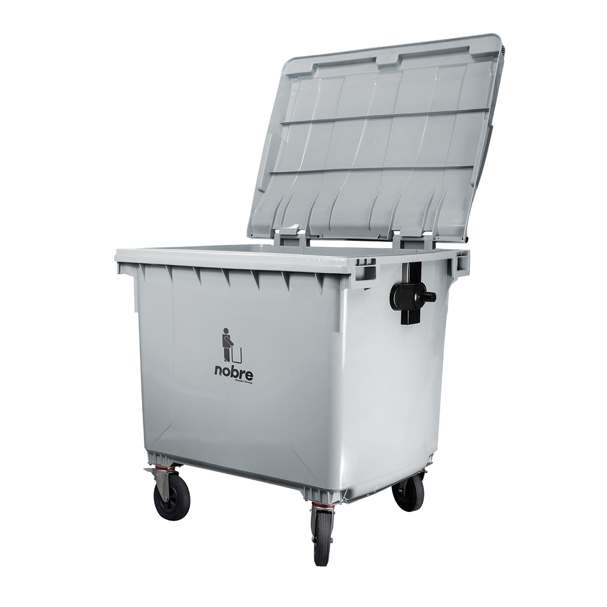 Coletora plastica 1100l. (s/ pedal, c/ rodas e engate p/ coleta mecanizada) cinza – Nobre