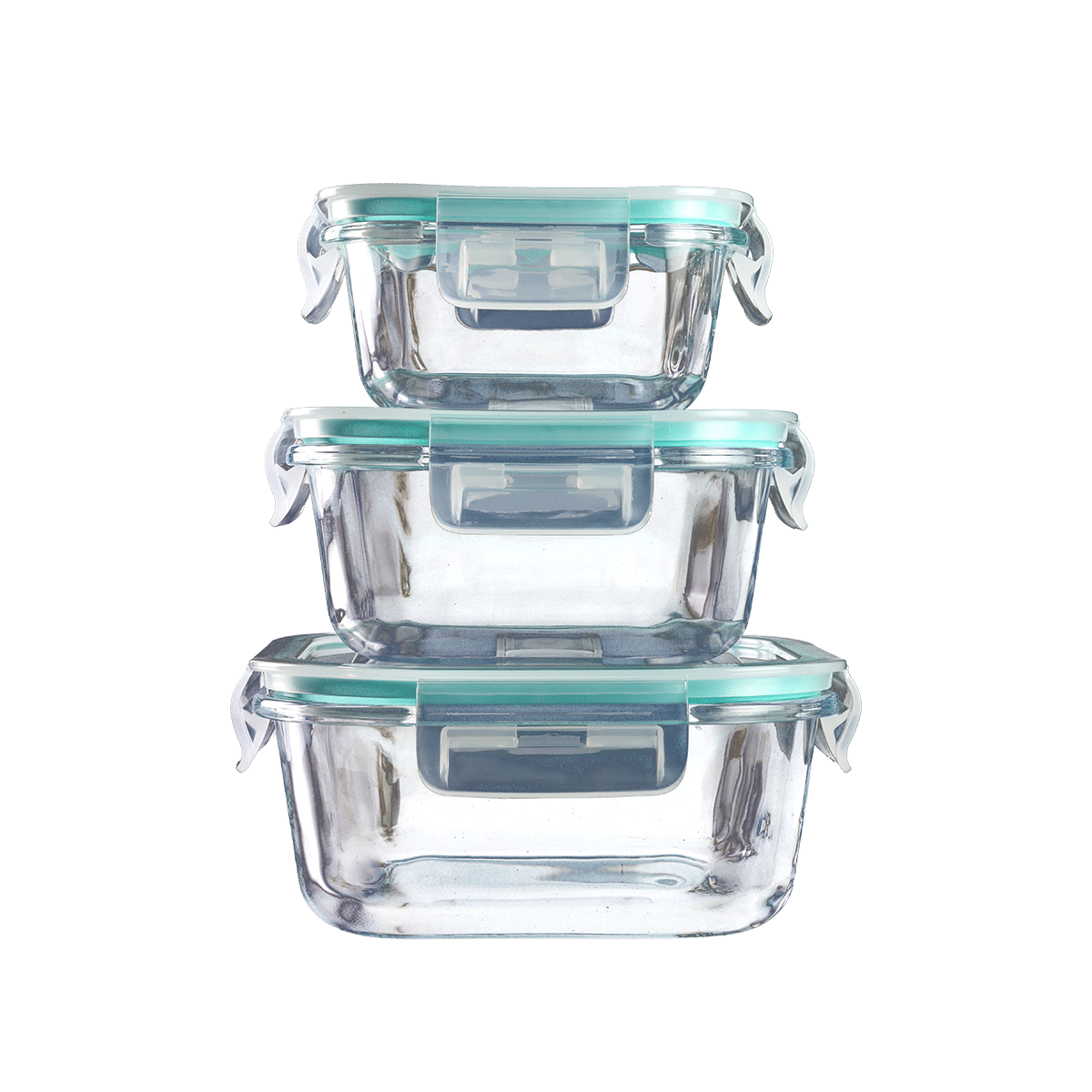 Conjunto 3 potes de vidro com tampa e trava (320ml + 500ml = 800ml) – Global