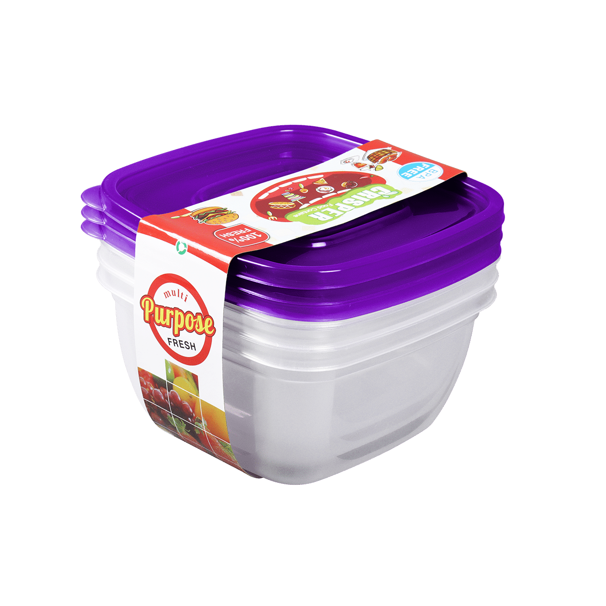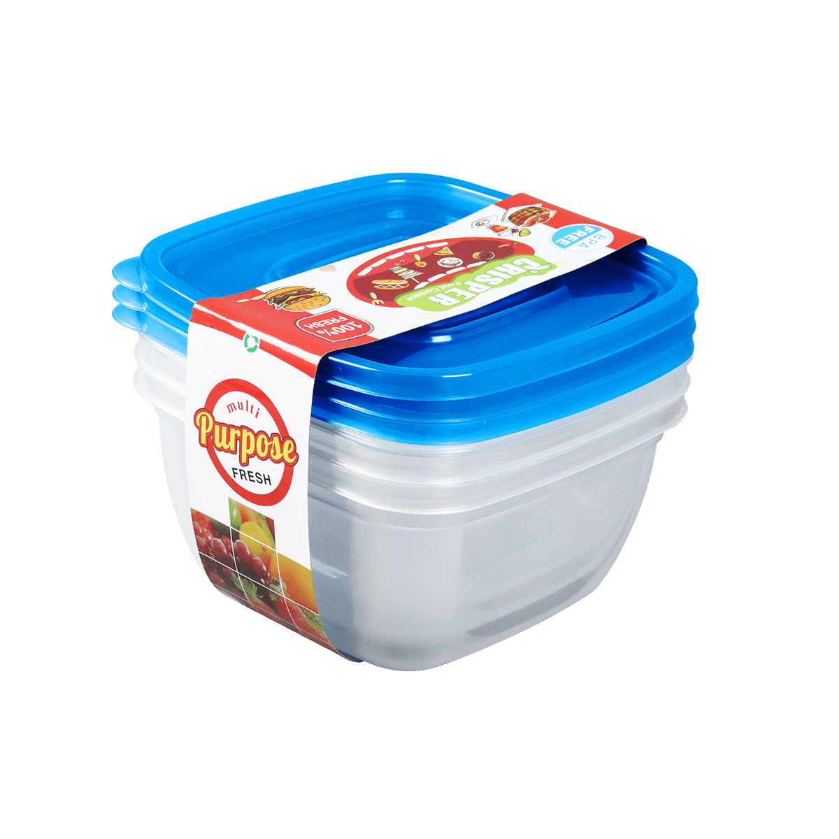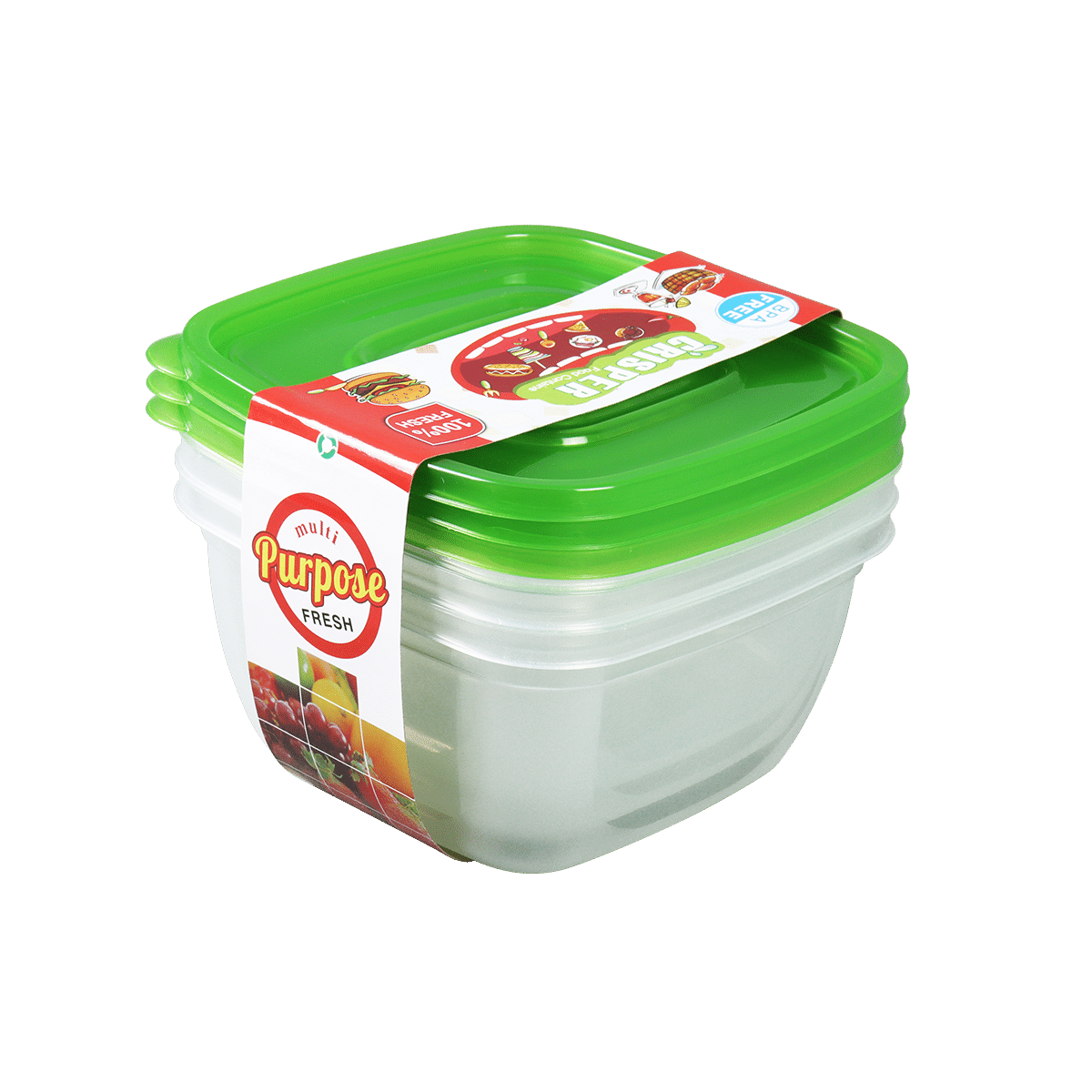 Conjunto 3 potes plasticos quadrados c/ tampa12.7*6.5 cores sortidas – 550ml – Global