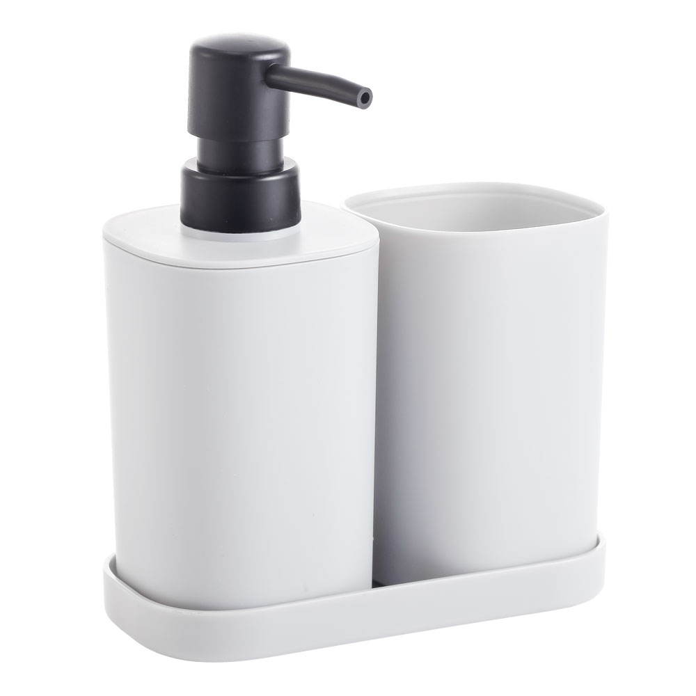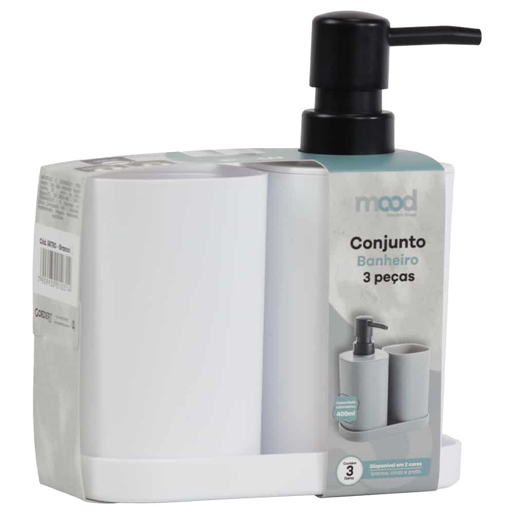 Este conjunto moderno e elegante adiciona um toque de sofisticação ao seu espaço. Composto por três peças essenciais Dispenser de sabonete liquido de 350ml, porta-objetos e bandeja de apoio este conjunto é perfeito para organizar e decorar o seu banheiro com estilo.