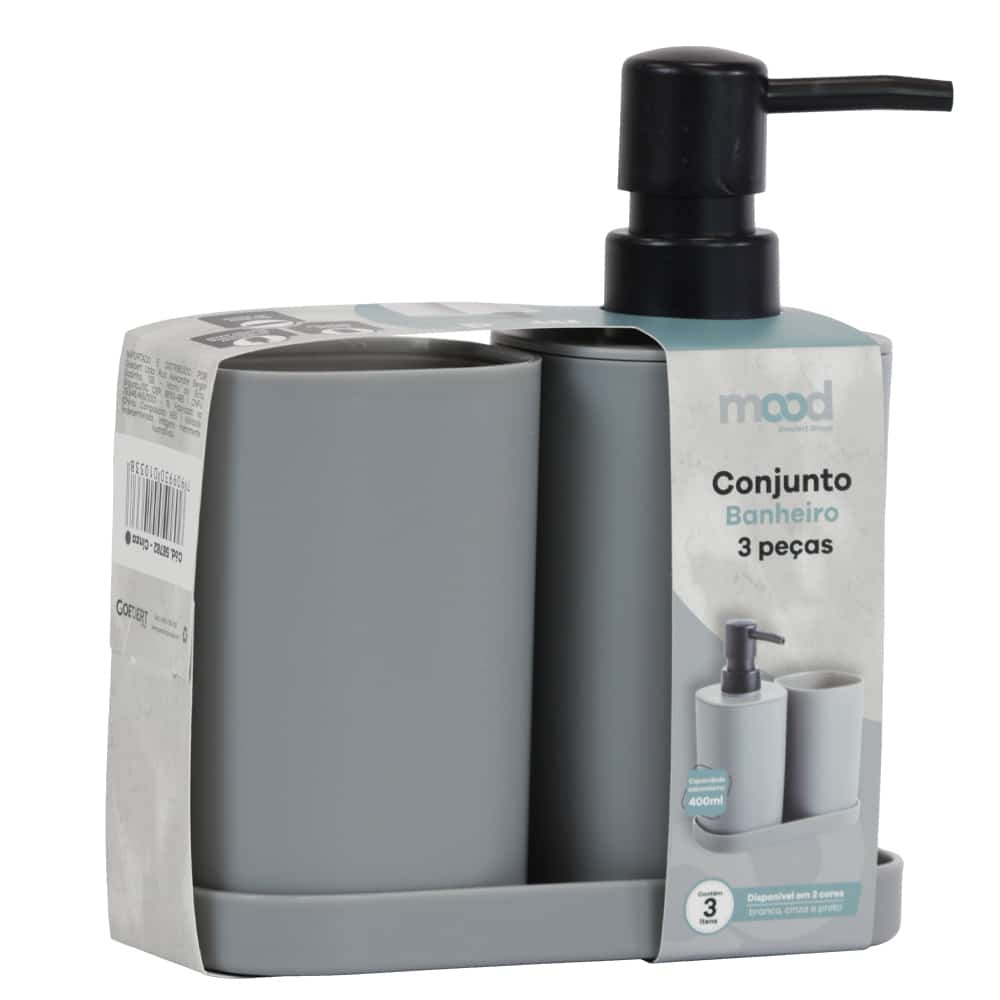 Conjunto p/ banheiro c/3pçs quadrado cinza – Mood