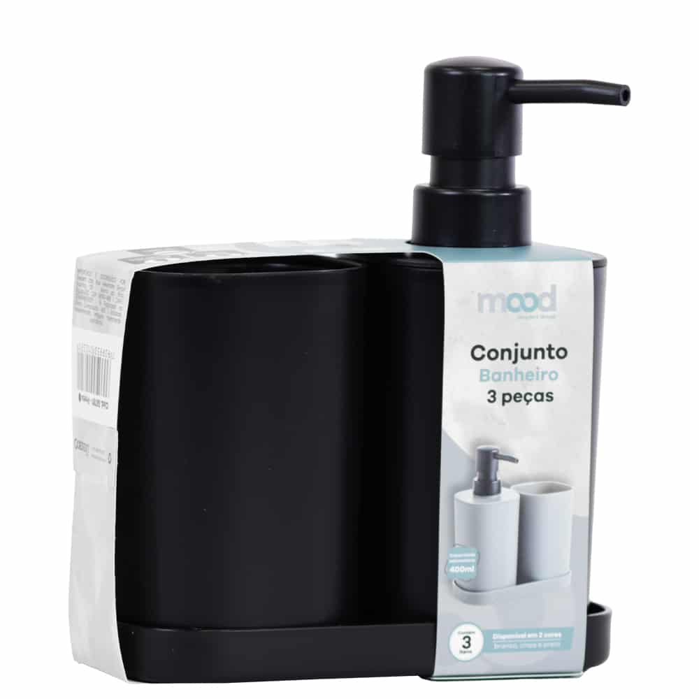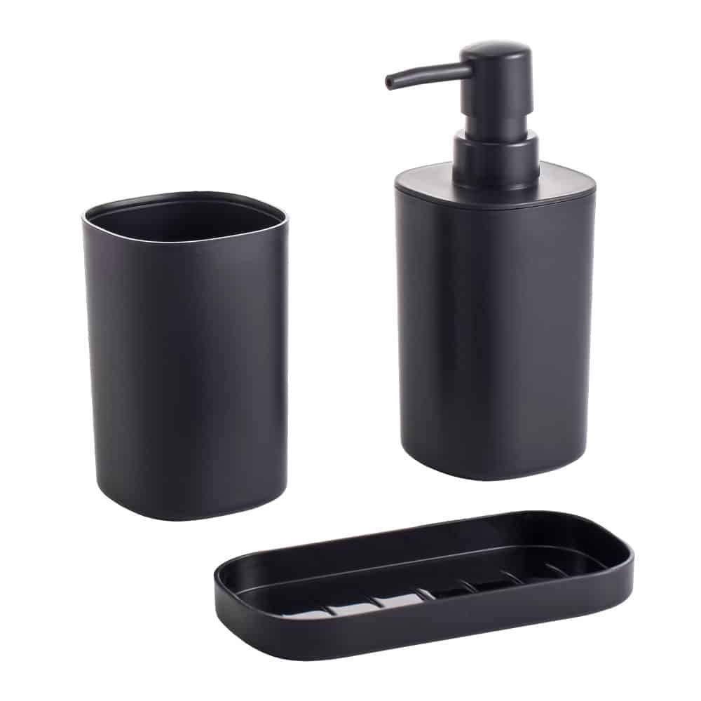Conjunto p/ banheiro c/3pçs quadrado preto – Mood