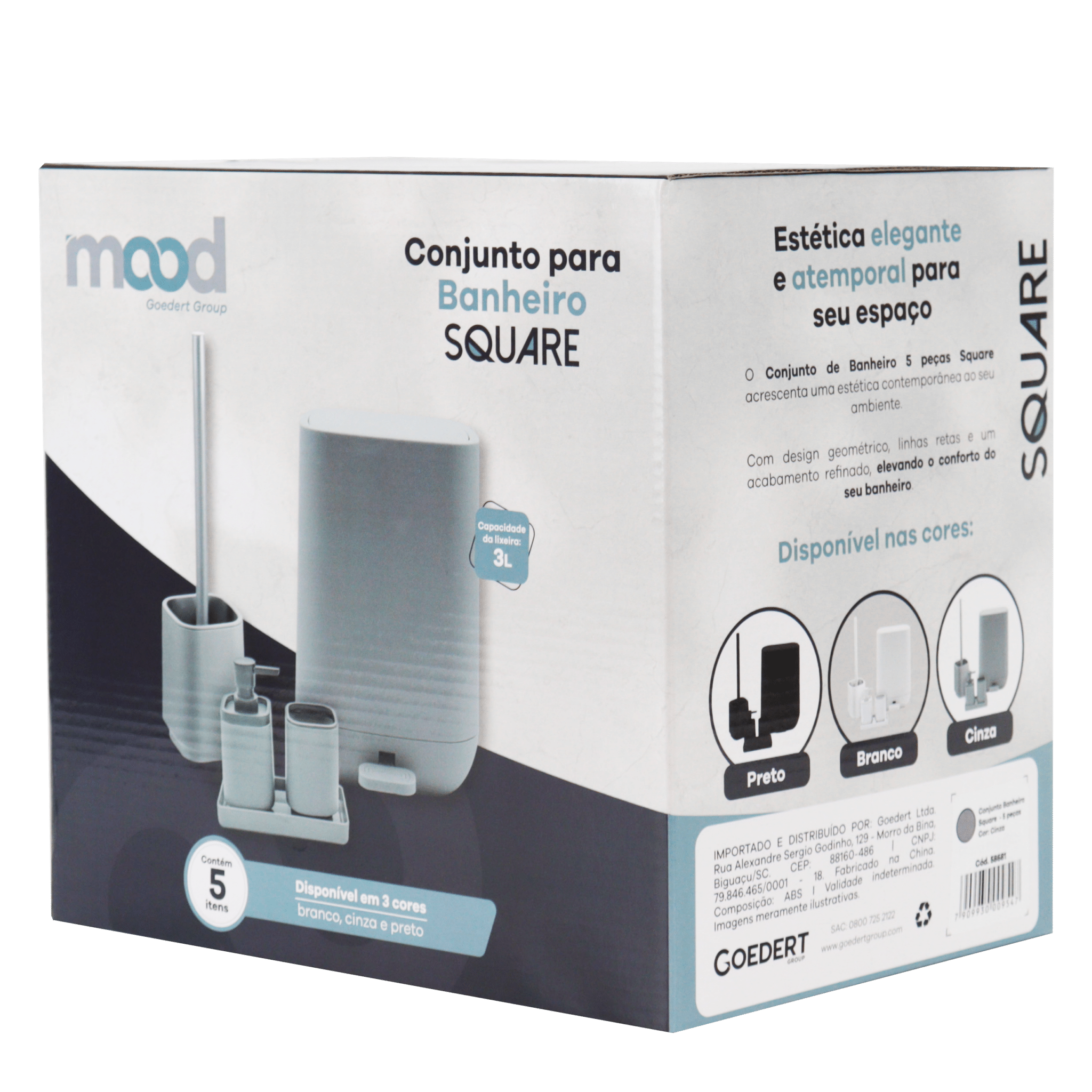 O Conjunto de Banheiro 5 peças Square acrescenta uma estética contemporânea ao seu ambiente.