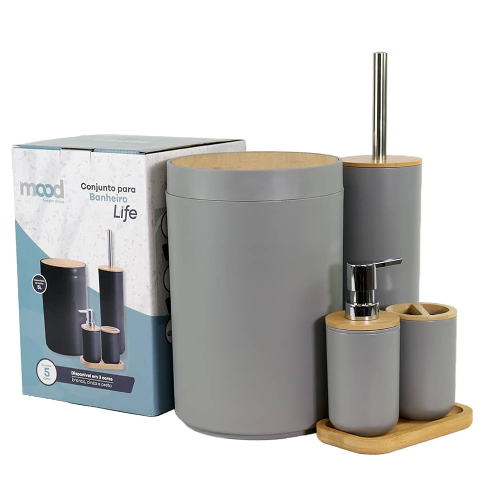 Conjunto p/ banheiro c/5pçs cinza Life – Mood