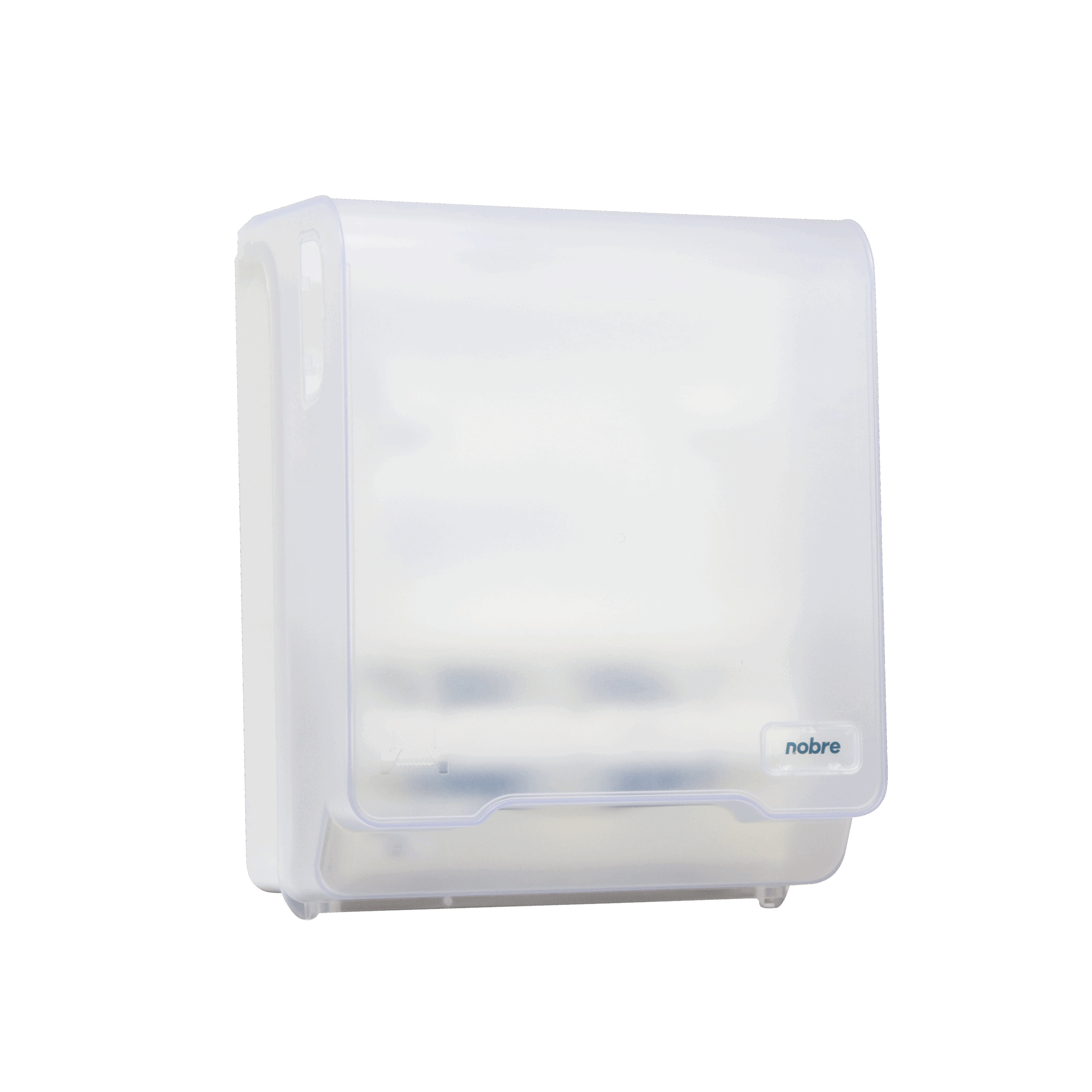 Dispenser autocortante p/ toalha bobina mecânico branco (c/ frente translucida) Brave – Nobre
