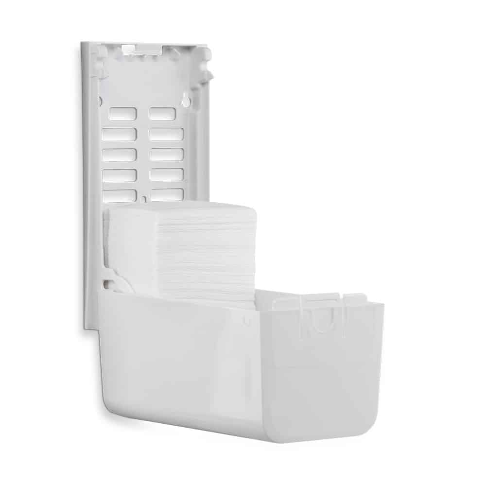 Disponibiliza ao usuário uma folha por vez, sem a necessidade de corte. Muito mais economia no uso de papéis higiênicos em banheiros e lavabos.
