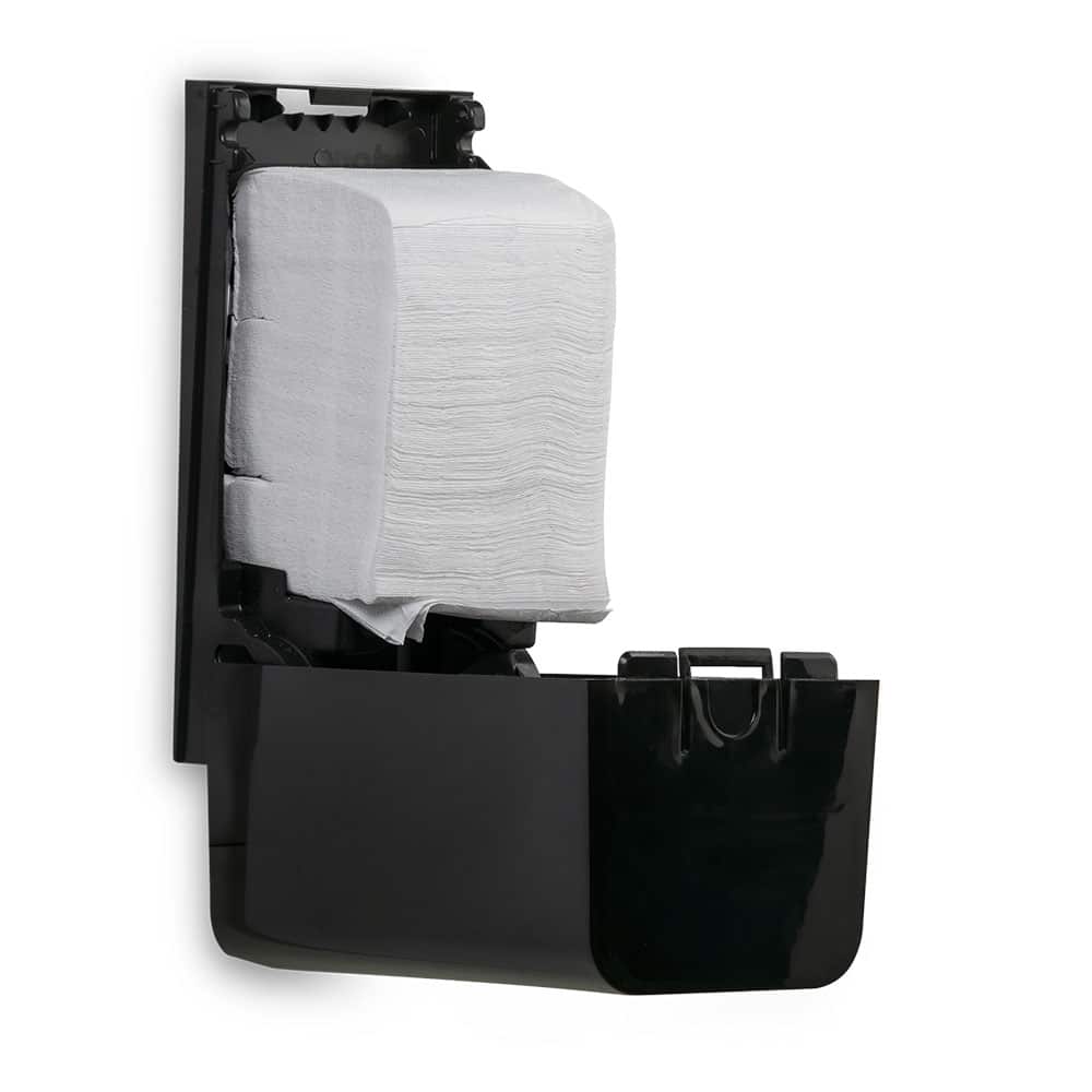 Disponibiliza ao usuário uma folha por vez, sem a necessidade de corte. Muito mais economia no uso de papéis higiênicos em banheiros e lavabos.