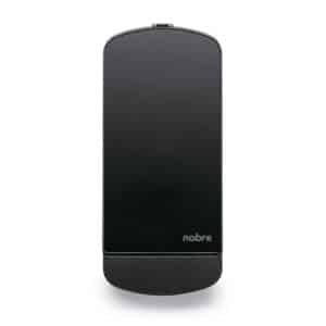 Possui acionamento frontal, com a tecla embutida na face frontal da