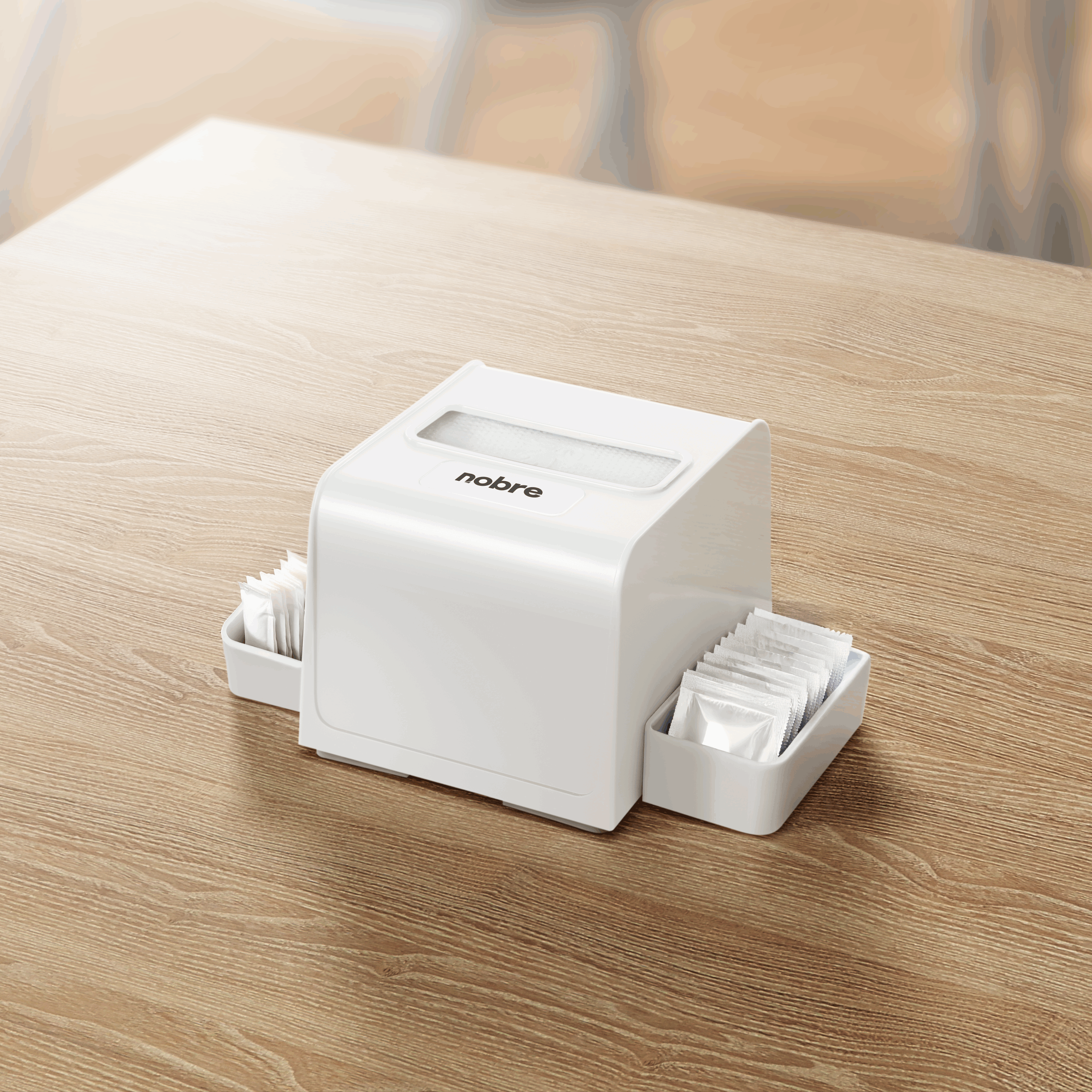 Dispenser p/guardanapo interfolhado (c/ porta sachê) branco – Nobre