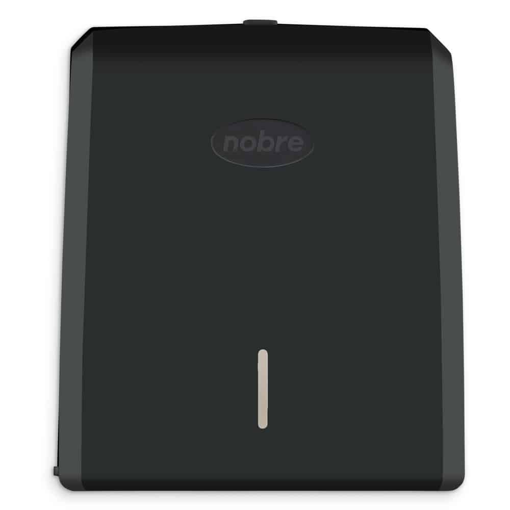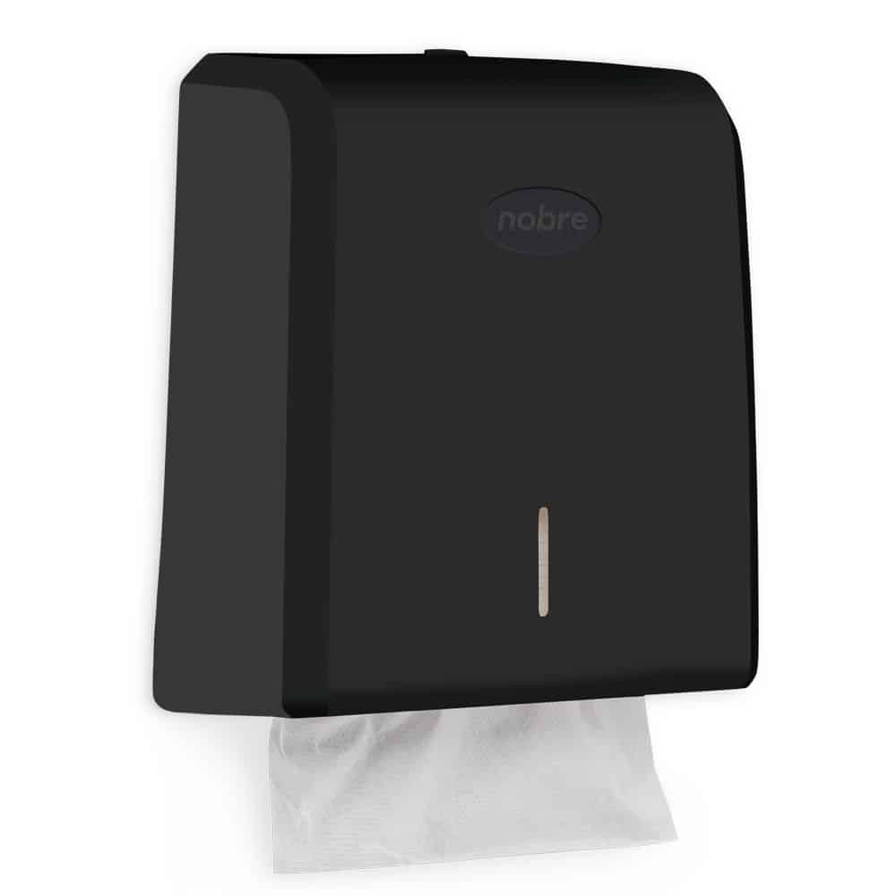 Pressione o botão; abra com cuidado, puxando a parte frontal pra frente e para baixo; fixe o dispenser na parede, utilizando os parafusos que o acompanham.