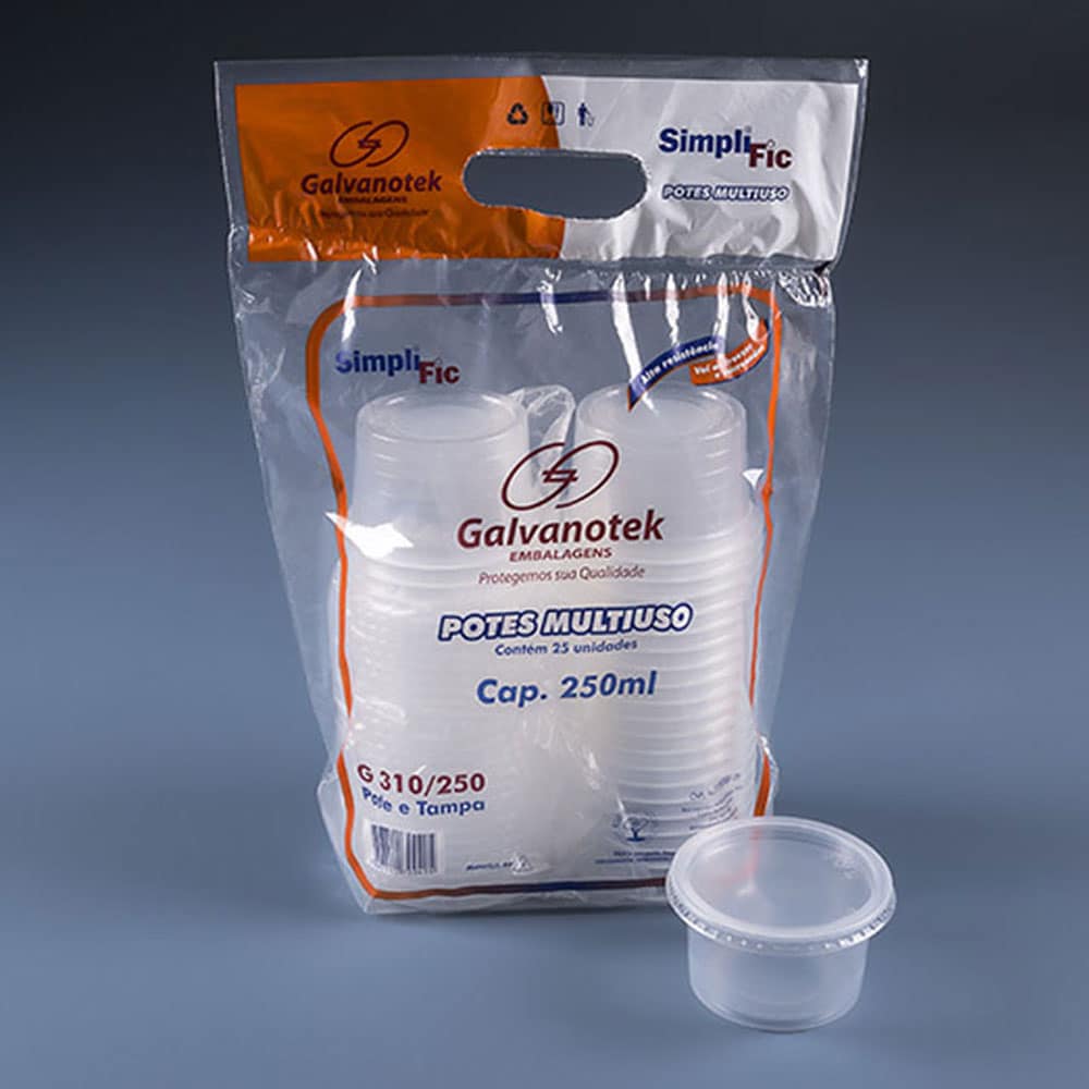 Embalagem pote redondo c/ tampa 250ml c/25un. – Galvanotek
