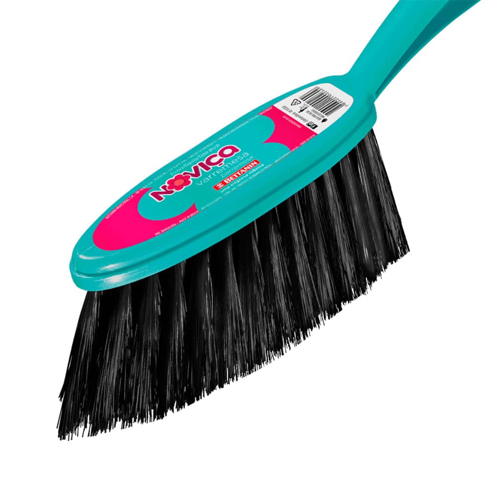 A escova varremesa da Noviça possui cerdas delicadas, cabo cabo longo e ergonômico.