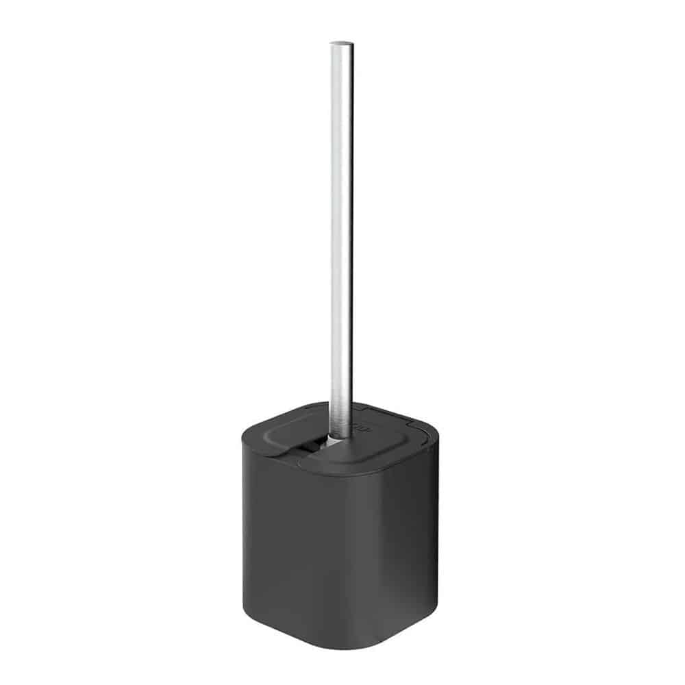 E após a limpeza, a escova sanitária é colocada no suporte sem causar sujeira, o suporte possui
