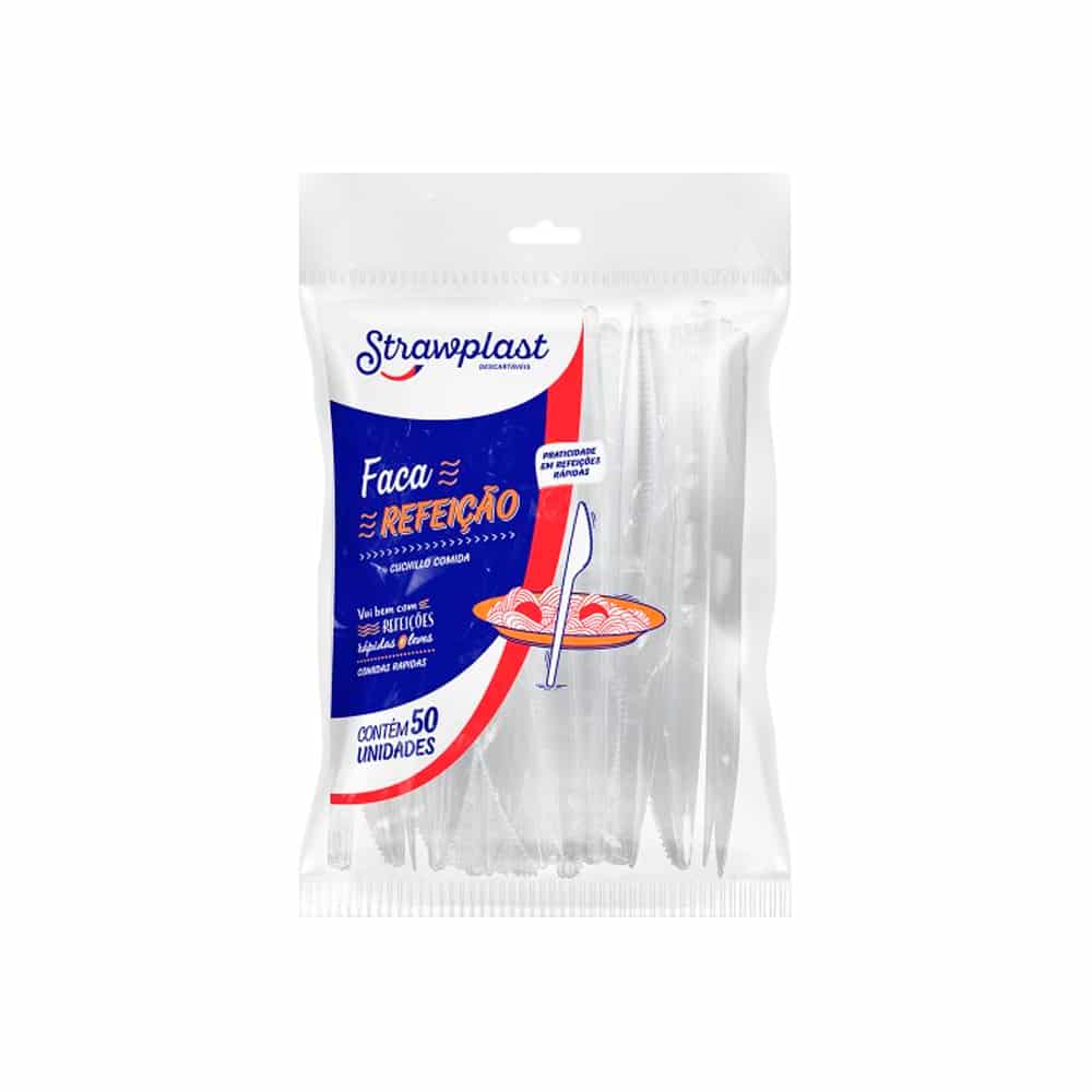 Faca Plastica p/Refeicao descartavel “leve” Cristal (pacote c/50un.) – Strawplast