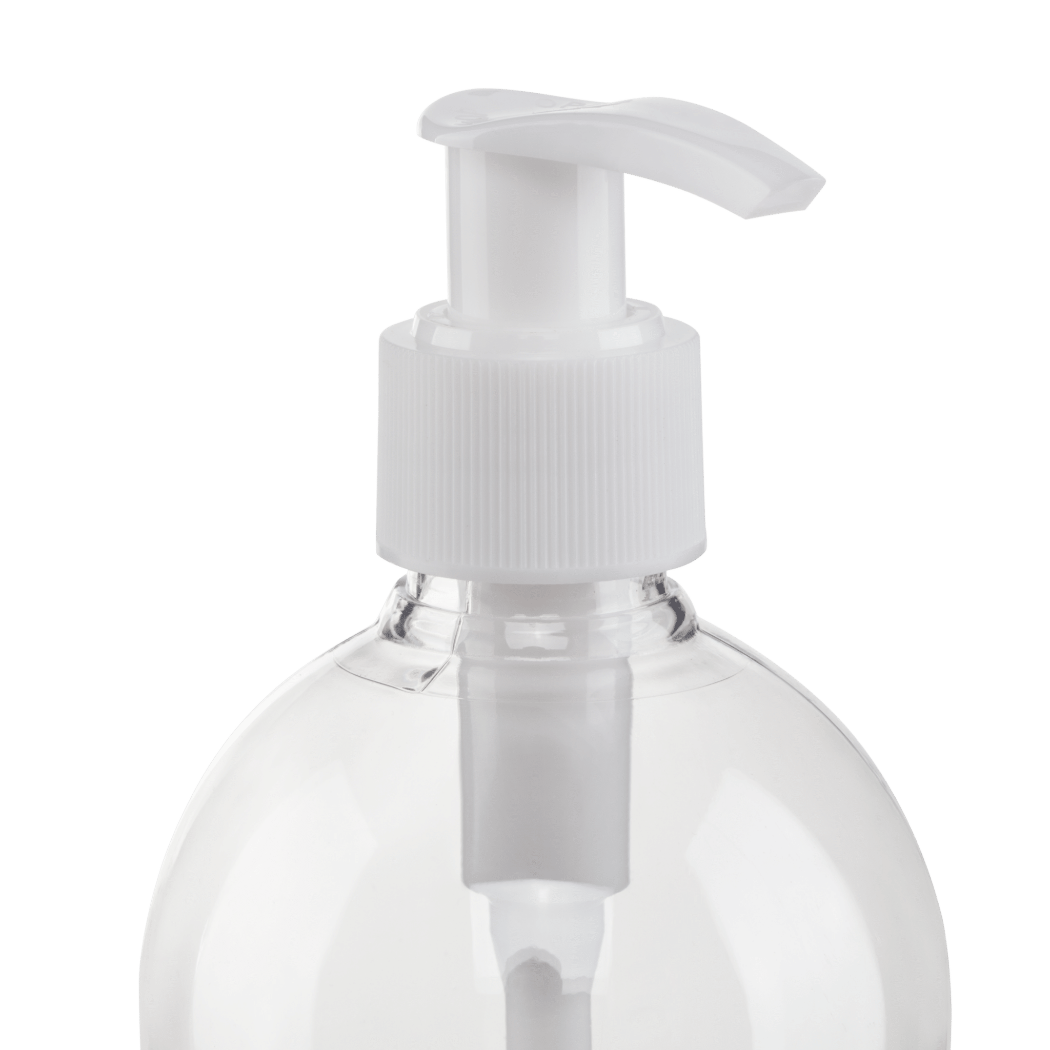 1 Frasco PET transparente capacidade 1 Litro e 1 válvula pump branca.
