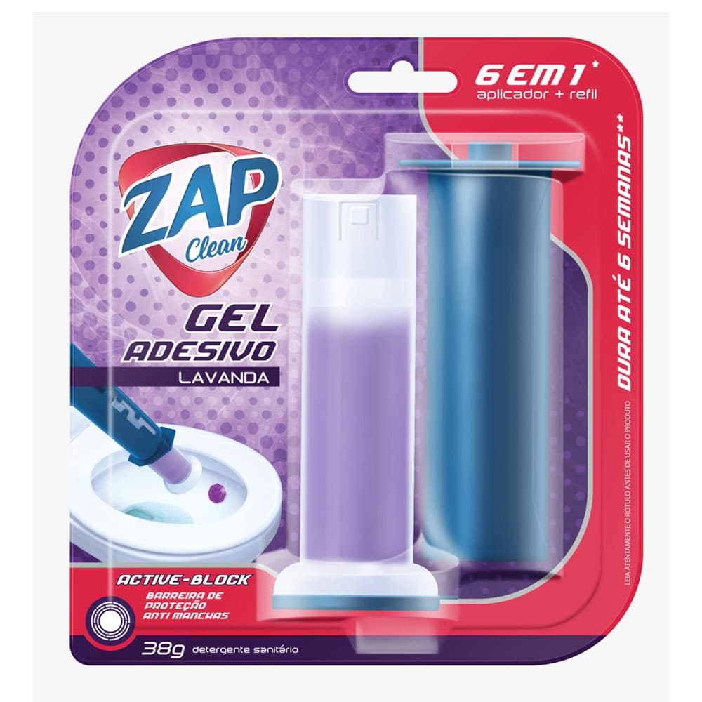 O Gel Adesivo Zap Clean é apresentado em prático e higiênico aplicador e acompanha refil econômico.