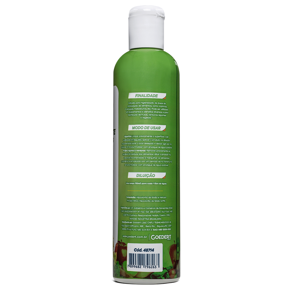 Indicado para higienização de áreas de manipulação de alimentos, como cozinhas, açougues, matadouros, etc. Pode ser utilizado em equipamentos e utensílios diversos, e para desinfecção de frutas, verduras, legumes e vegetais.