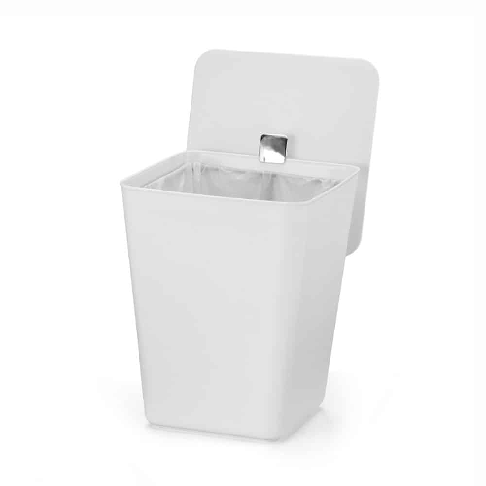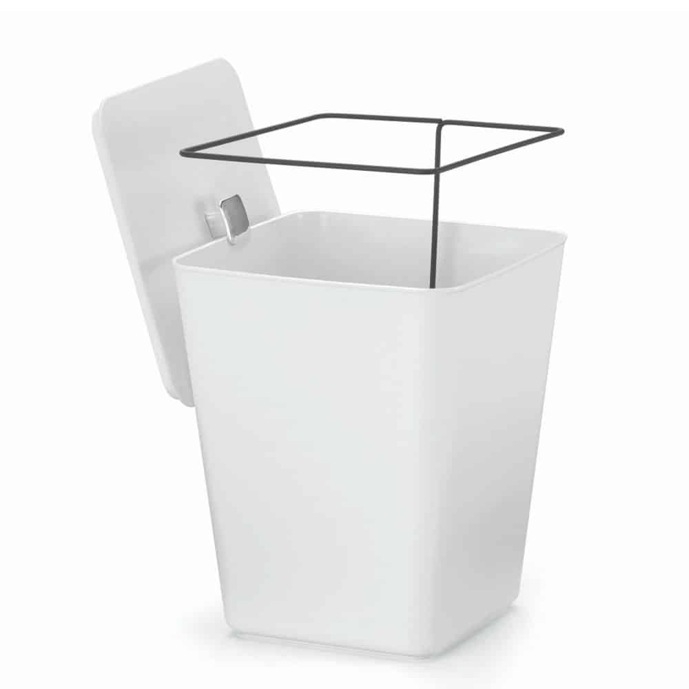 Lixeira branca com a capacidade de 7 litros, com tampa.