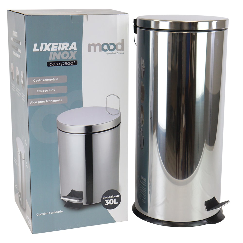 Lixeira inox redonda c/pedal 30l. polido Mood