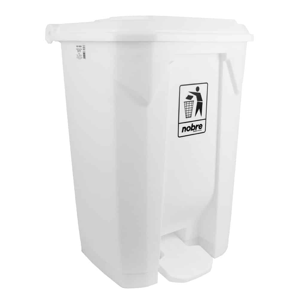 Lixeira plástica com pedal, para uso interno ou externo. Com pedal e tampa. Pode ser utilizada para coleta seletiva.