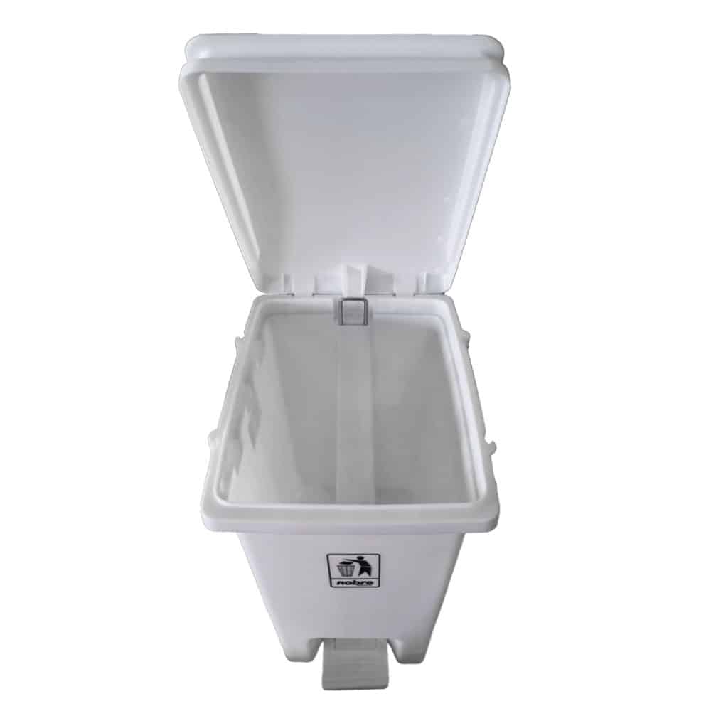 Lixeira plástica com pedal, para uso interno ou externo. Com Pedal e Tampa. Pode ser utilizada para coleta seletiva.