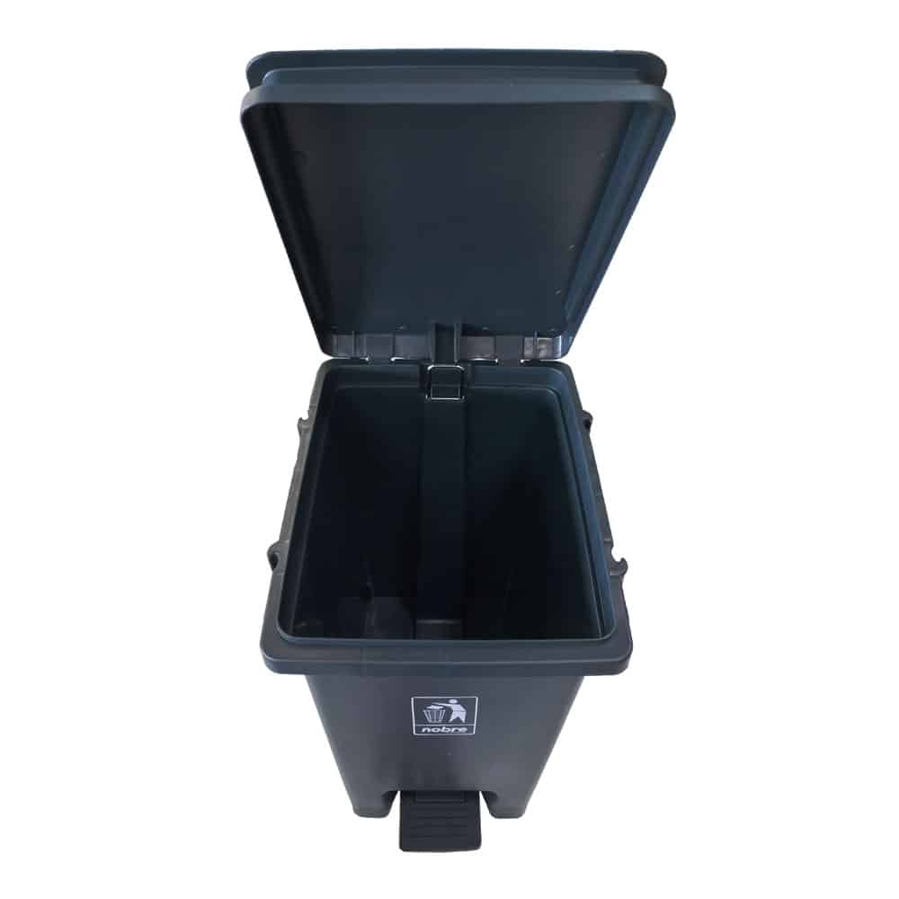 Lixeira plástica com pedal, para uso interno ou externo. Com Pedal e Tampa. Pode ser utilizada para coleta seletiva.