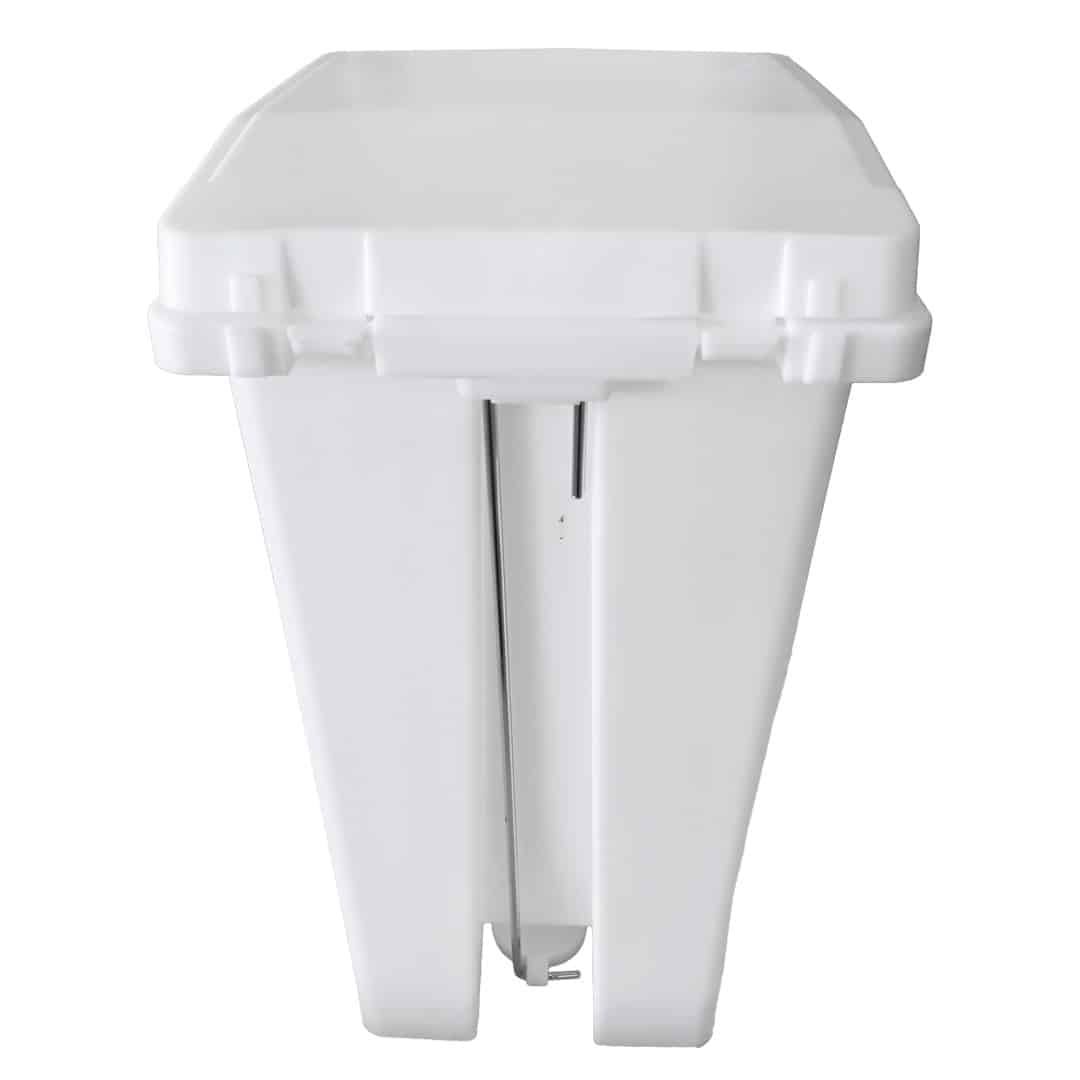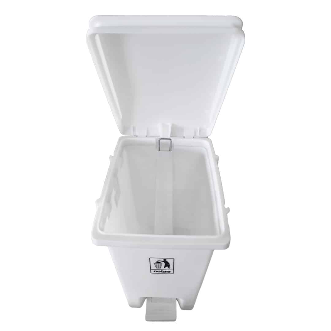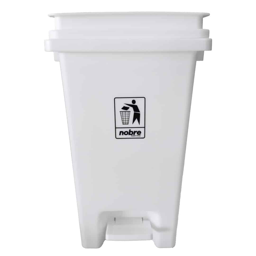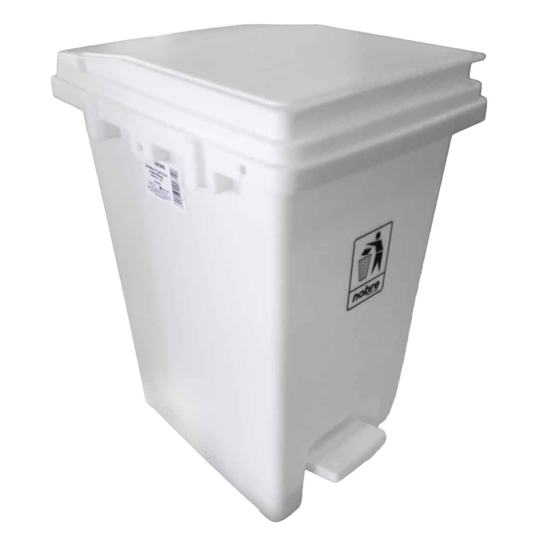 Lixeira plástica com pedal, para uso interno ou externo. Com pedal e tampa. Pode ser utilizada para coleta seletiva.