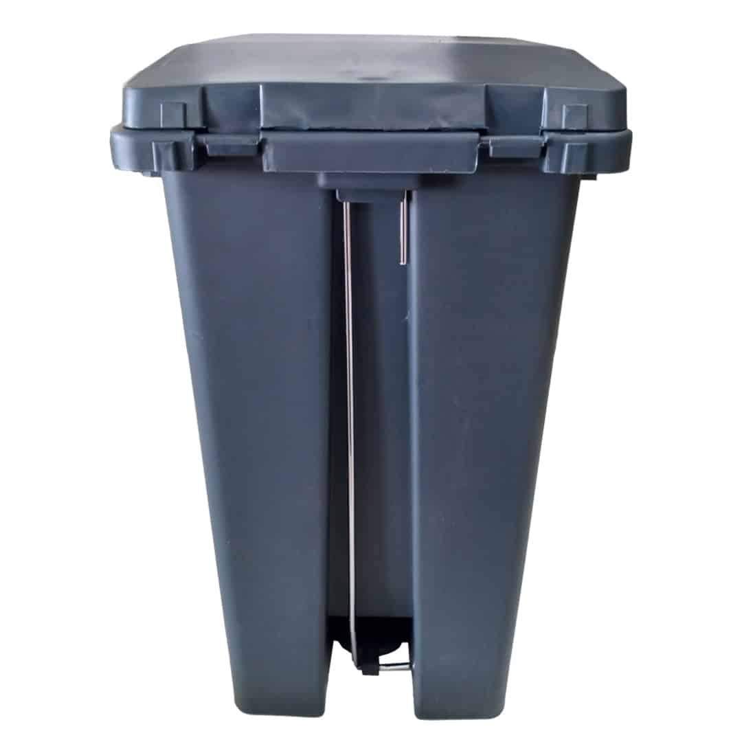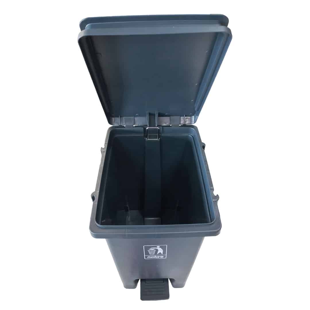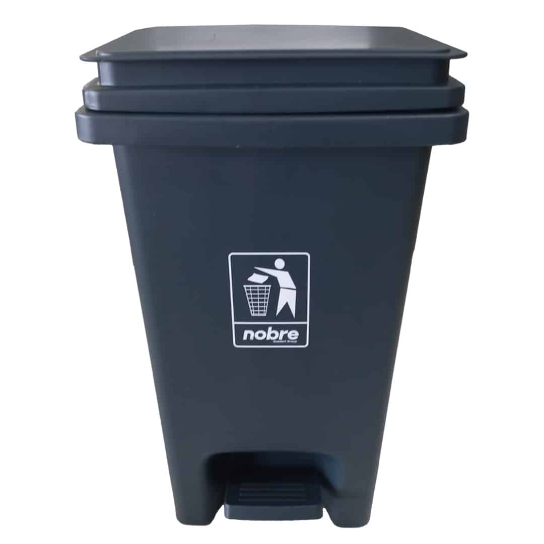 Lixeira plástica com pedal, para uso interno ou externo. Com pedal e tampa. Pode ser utilizada para coleta seletiva.