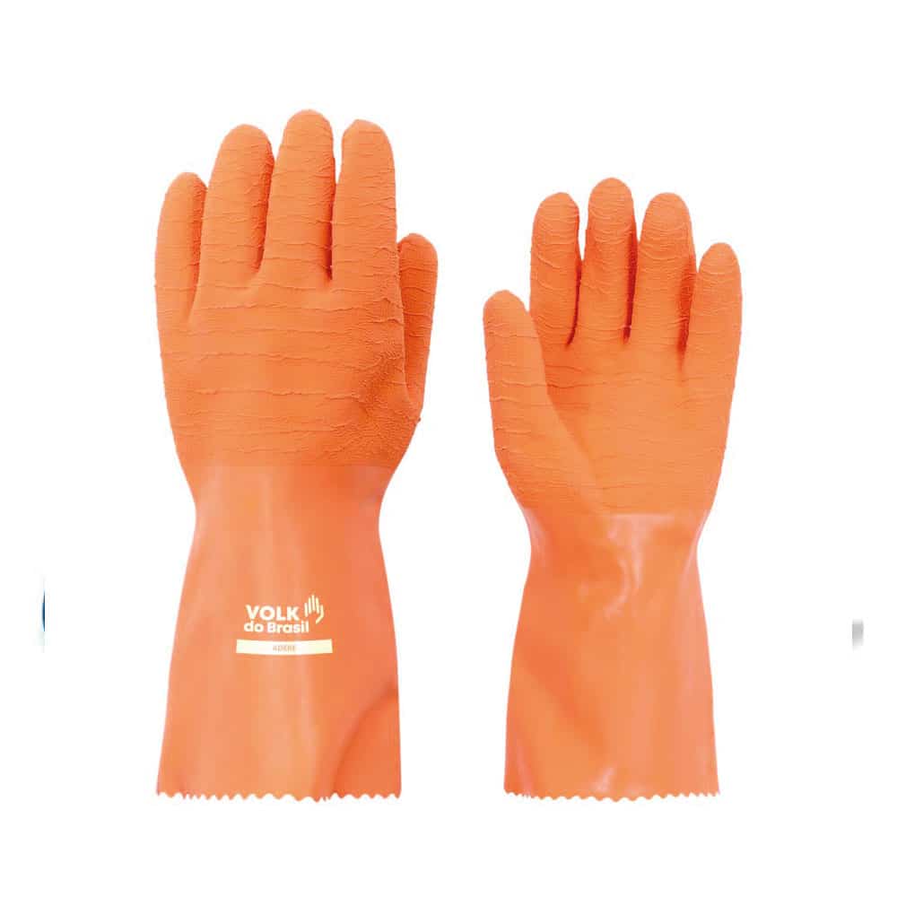 totalmente revestida em látex corrugado na palma, pontas dos dedos e dorso,