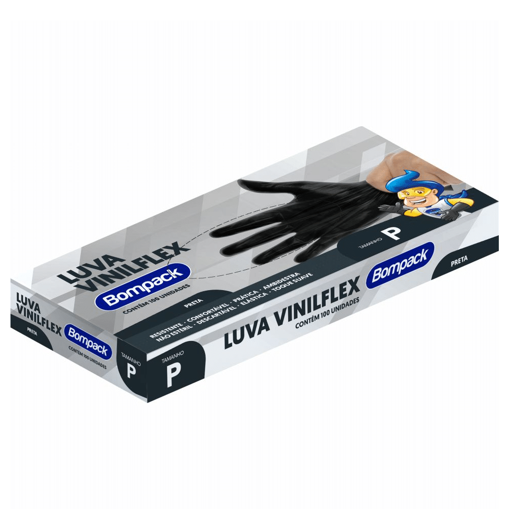 Luva Vinilfex Preta – Sem Pó – P – 100unid. – Bompack