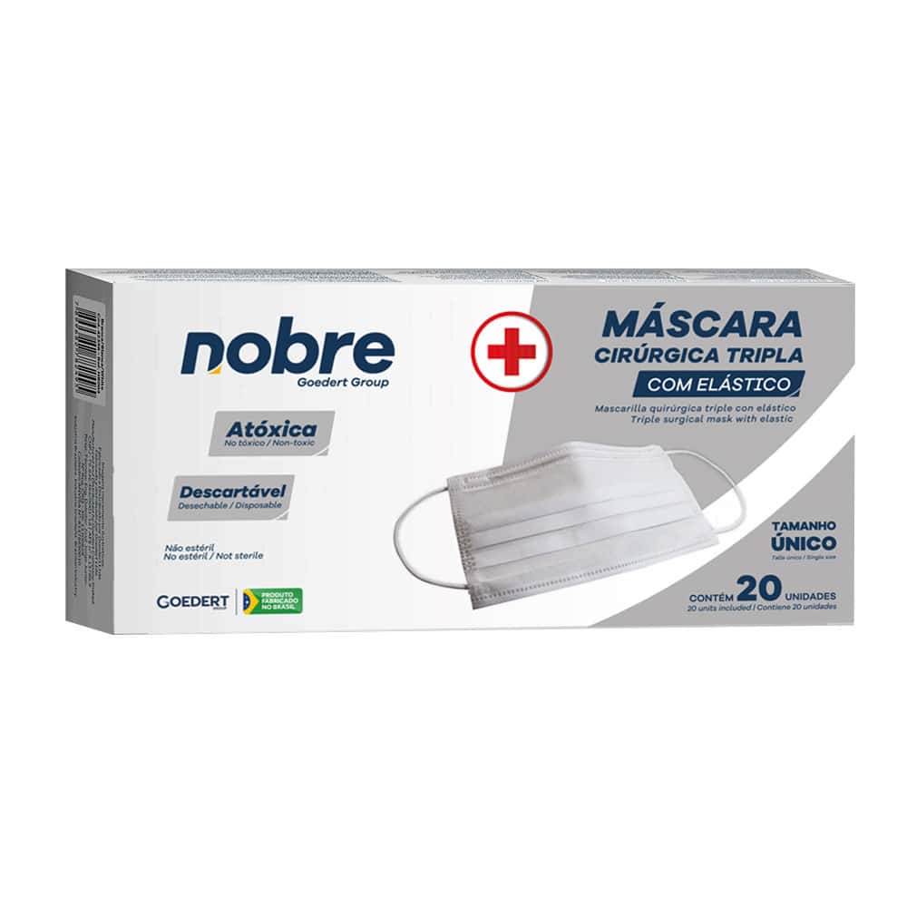 Máscara Cirúrgica Tripla – c/ Elástico – 20 unid. – Nobre