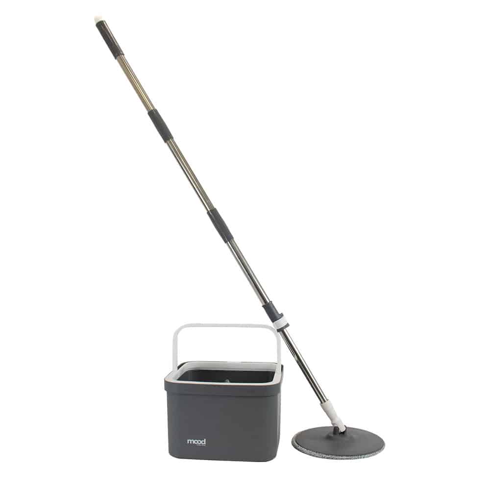 Mop rotatório quadrado smart clean (balde 10L c/cesto plastico e 1 refil) cinza/branco – Mood