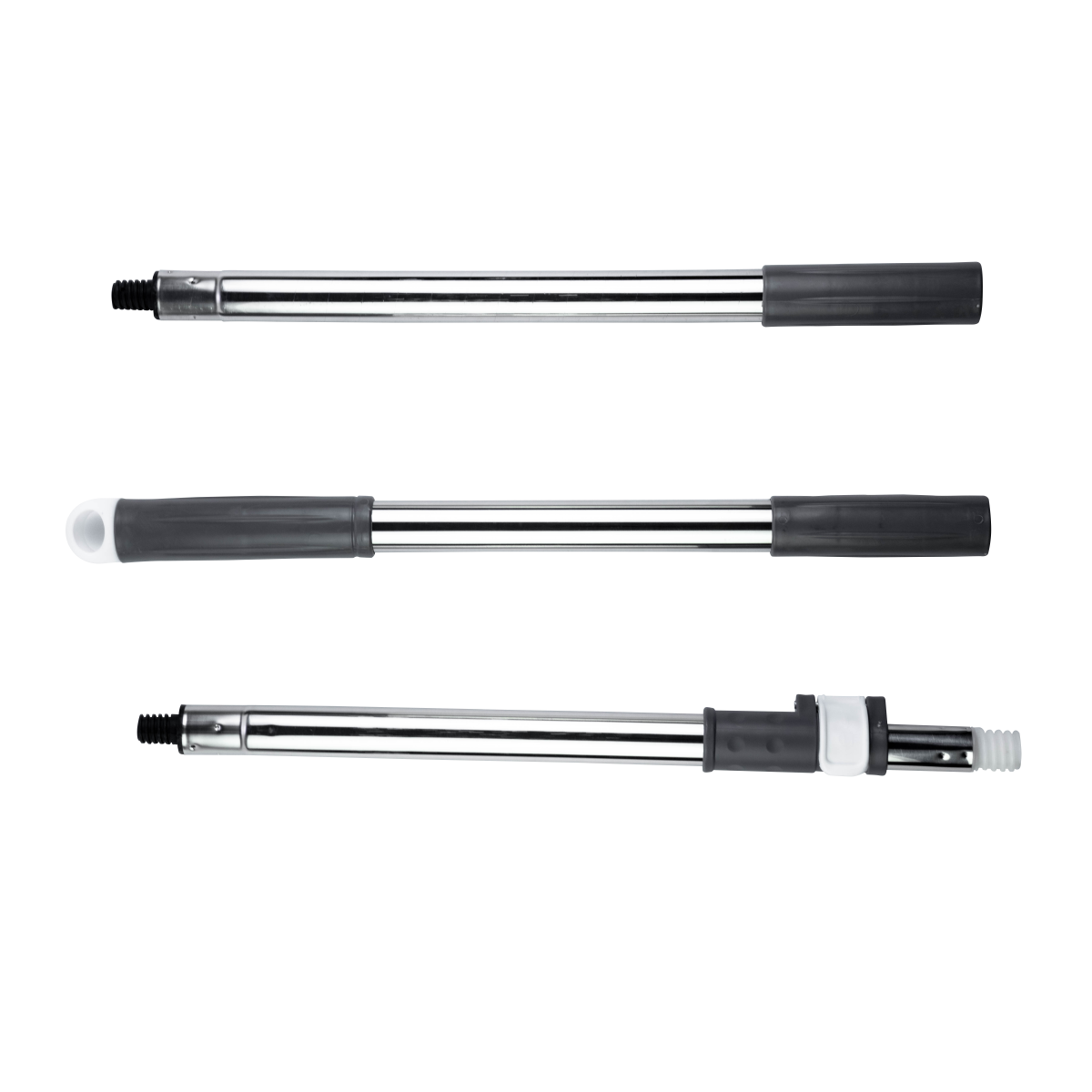 Plástico PP, Aço inox e microfibra.