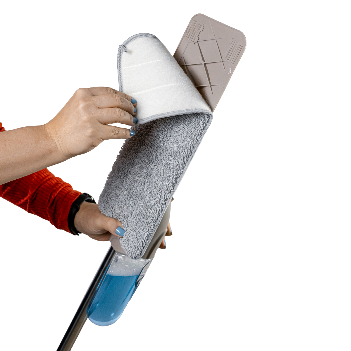 Se for lavar o refil de microfibra na máquina de lavar, não use alvejantes nem amaciantes e não use secadoras.