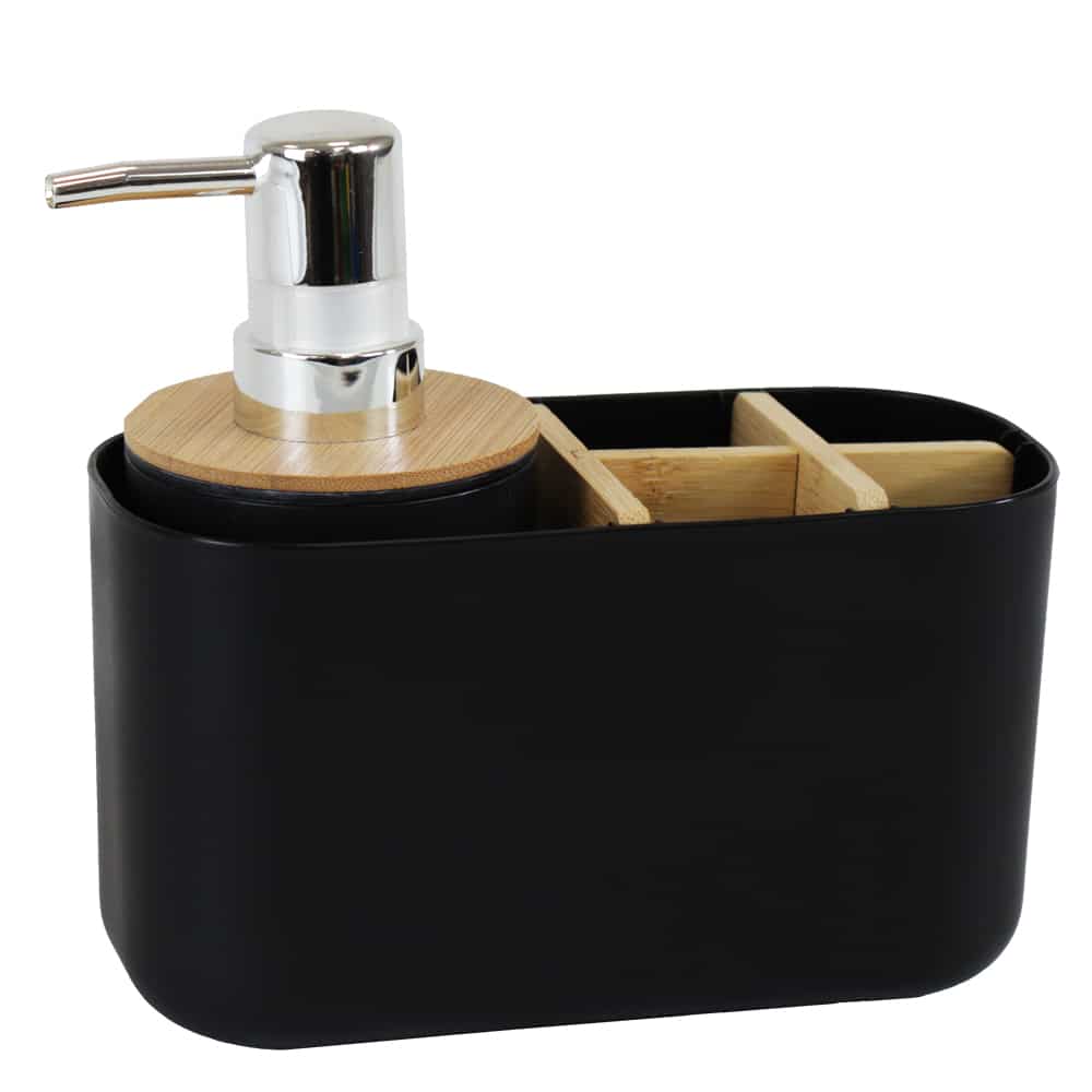 Organizador de banheiro de plástico c/ dispenser pump 280ml bambu preto – Mood
