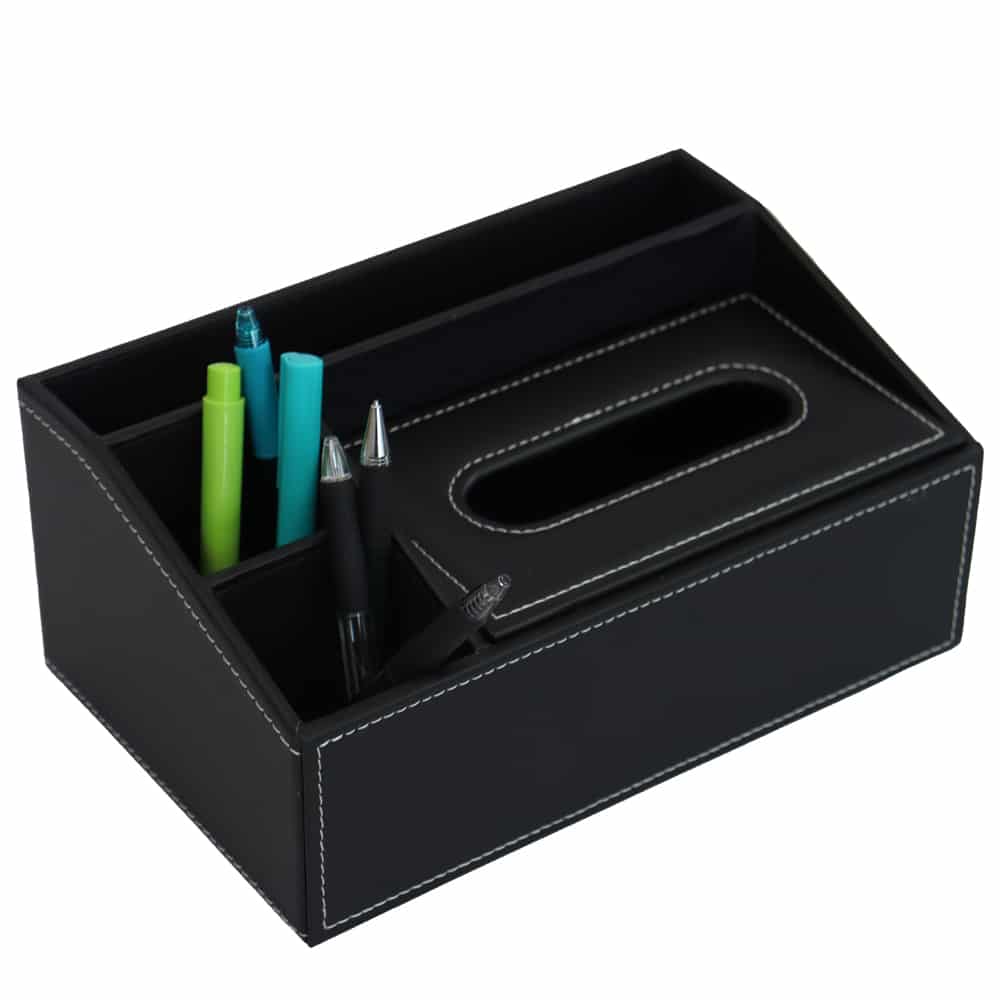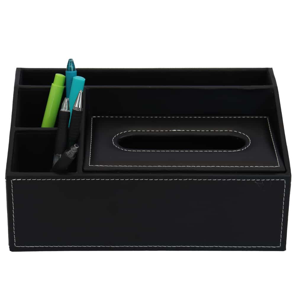 Organizador de escritório com superfície exterior em couro ecológico (poliuretano) e divisões internas em MDF – Global.