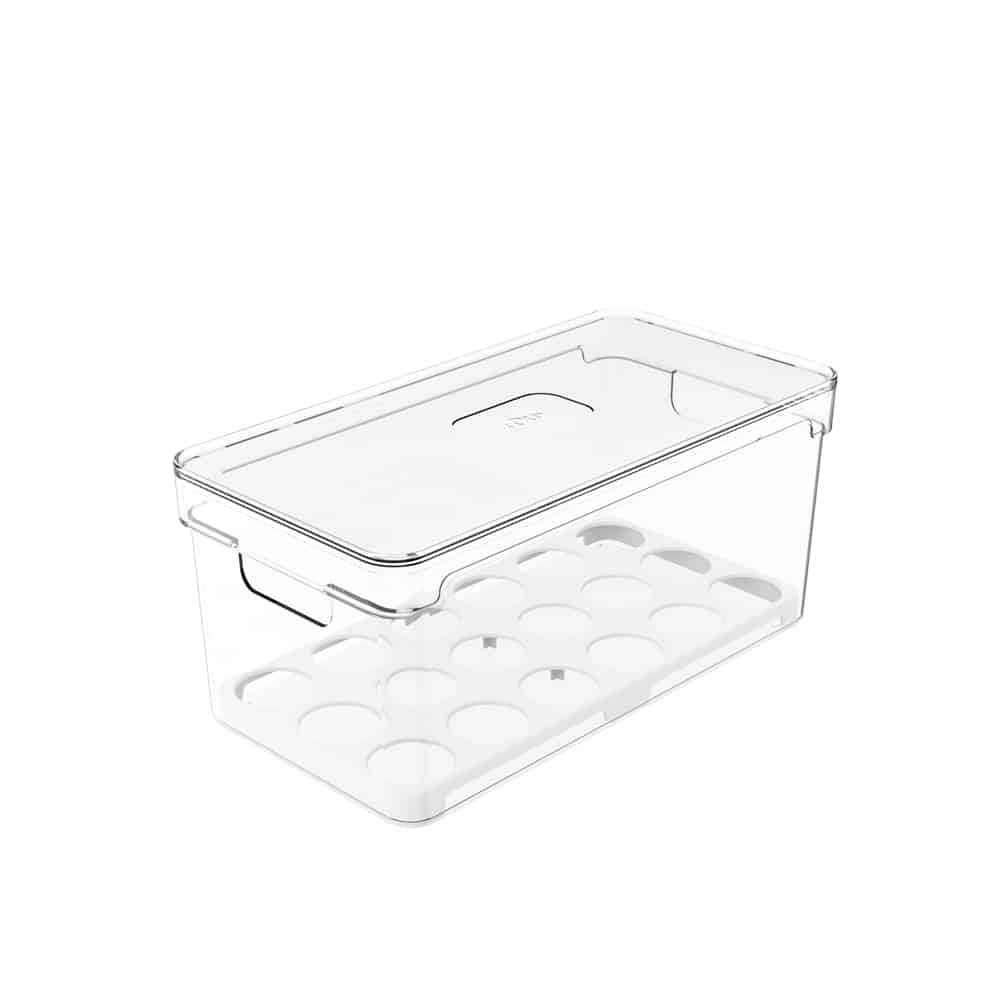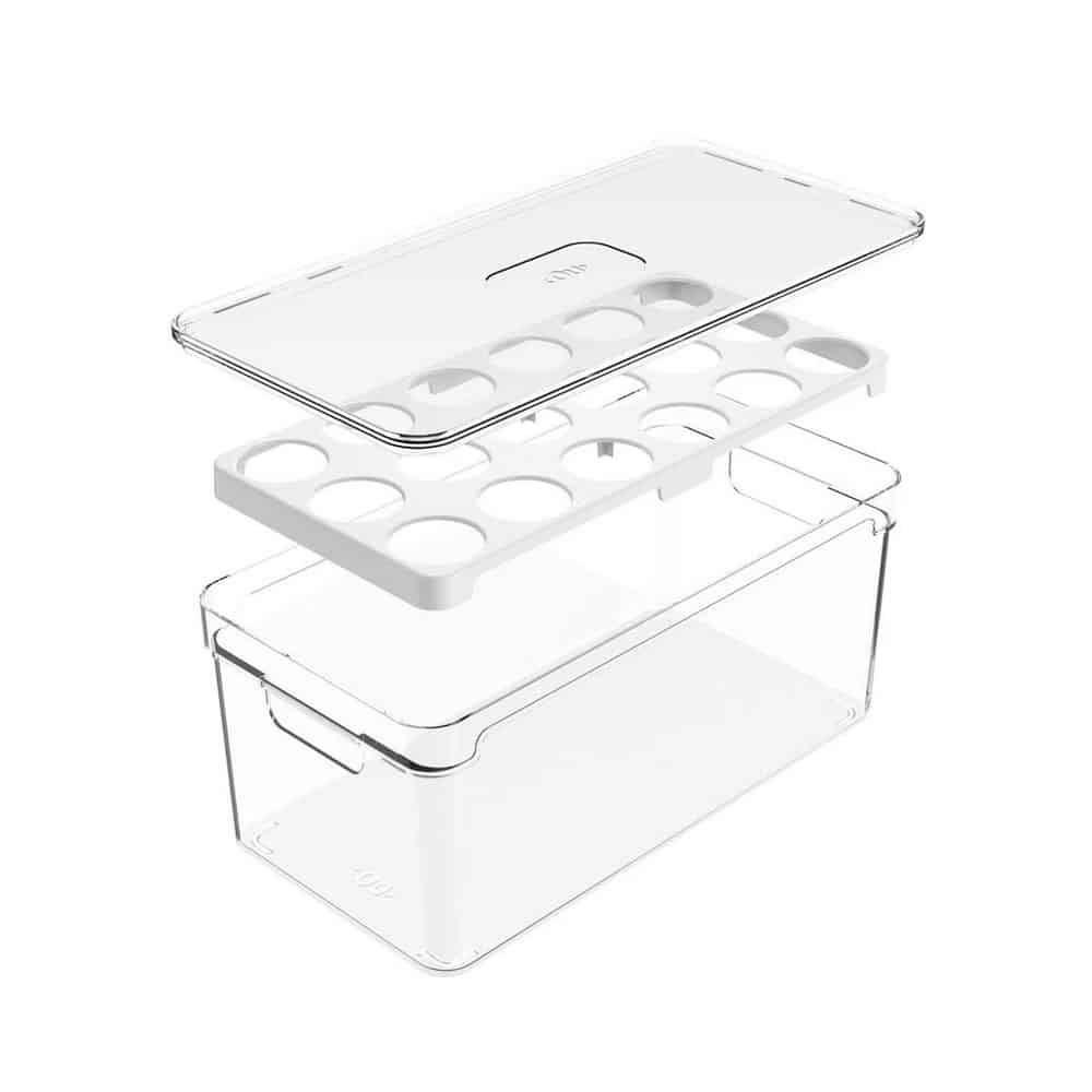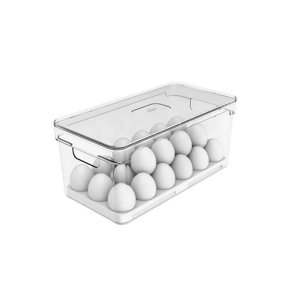 O Organizador de Ovos Com Tampa Clear Fresh 36 Unidades é o novo padrão de transparência na organização da sua geladeira. Empilhe, encaixe e enxergue facilmente os ovos armazenados na geladeira, mantendo tudo em ordem. Seu design foi pensado para permitir armazenagem no interior da geladeira ao invés da porta, evitando troca de temperaturas constantes que podem deteriorar os ovos, mantendo uma rotina sem desperdícios. Produzido em material resistente o organizar possui alças confortáveis que facilitam na hora do transporte. Super transparência, beleza e cuidado com o alimento são características da linha Clear Fresh, perfeitas para auxiliar na organização da sua geladeira e facilitar o seu dia a dia.