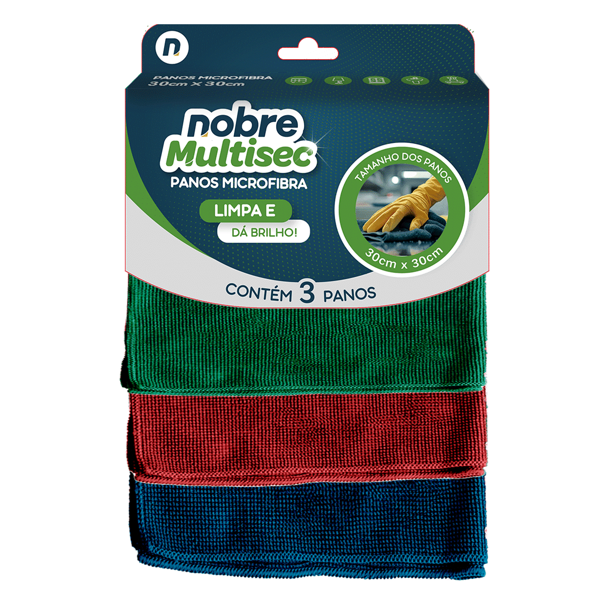 Pano de microfibra 30x30cm ( pacote c/ 3 unid.) vermelho,verde e azul – Nobre
