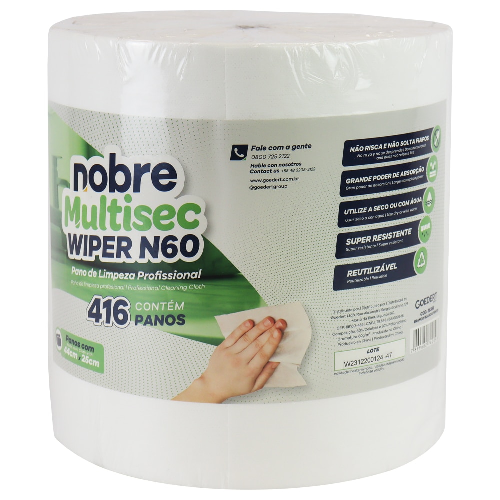 Pano Wiper N60 limpeza profissional – branco – Nobre